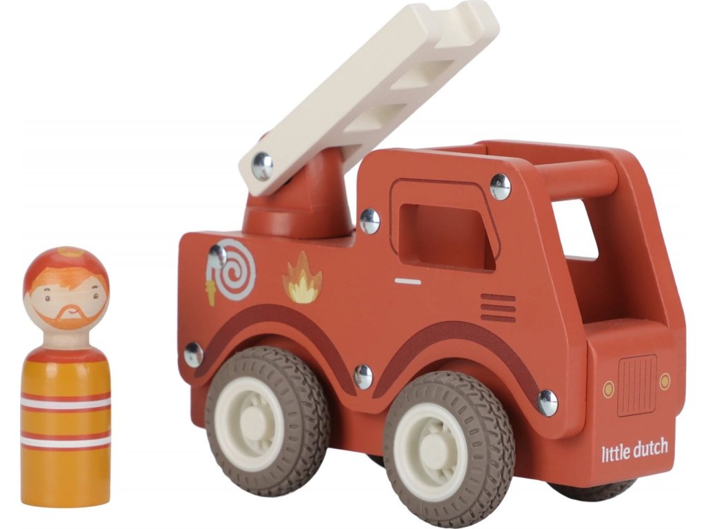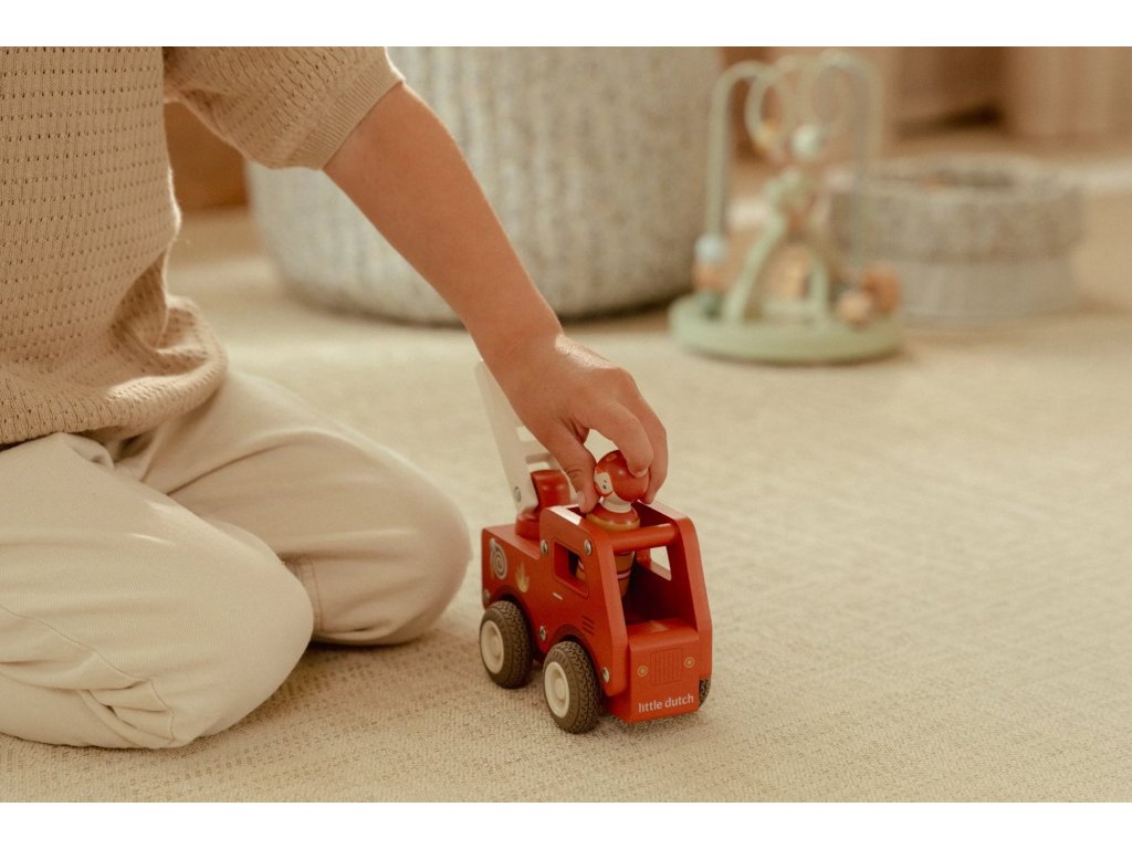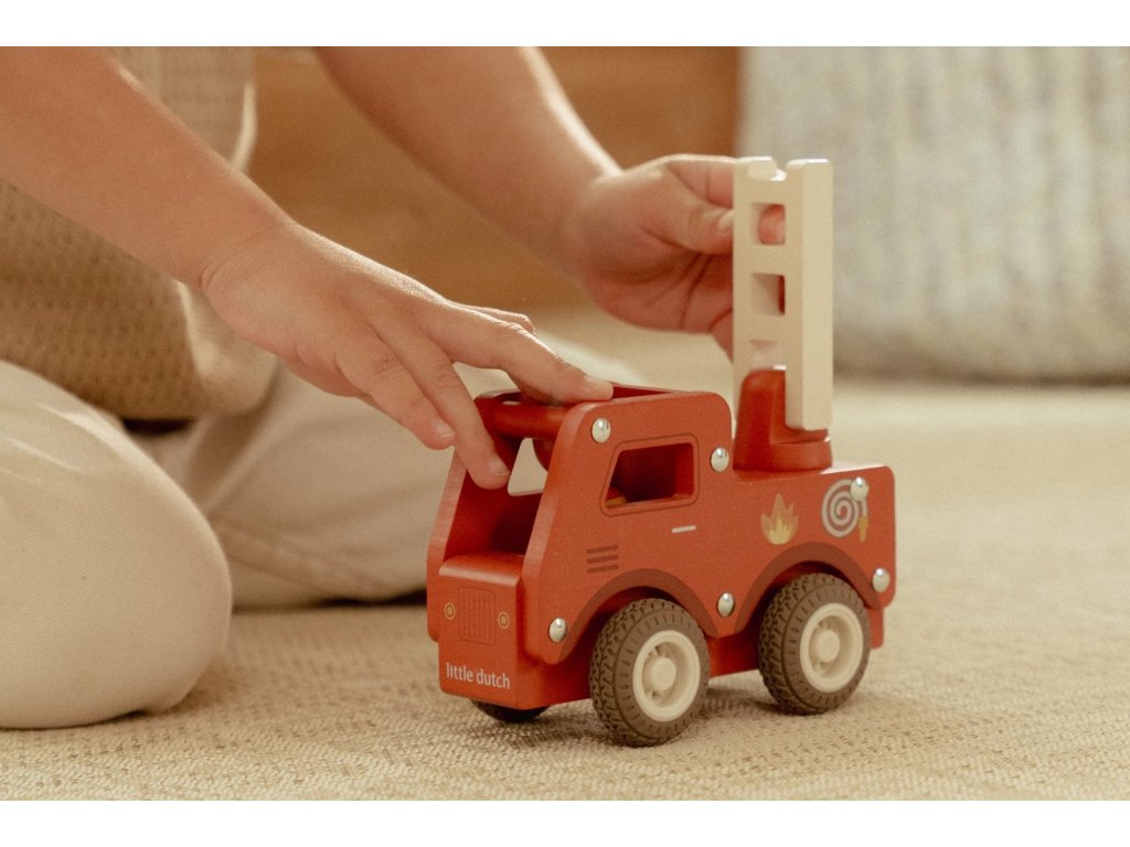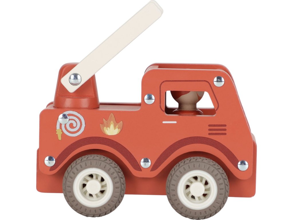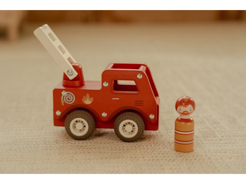 S tímto dřevěným hasičským autem budete vždy připraveni vyrazit do akce! Vozidlo je vybaveno výsuvným žebříkem a odvážným hasičem v podobě dřevěné figurky. Díky robustní konstrukci a gumovým pneumatikám je jízda plynulá a bezpečná na každém povrchu.