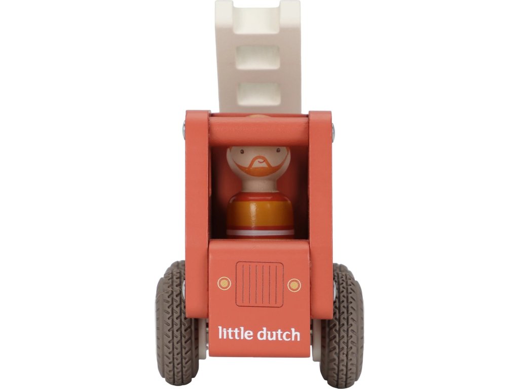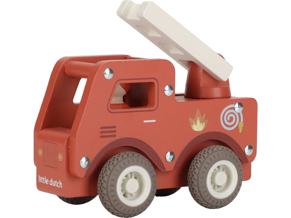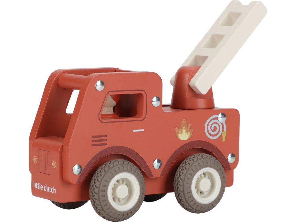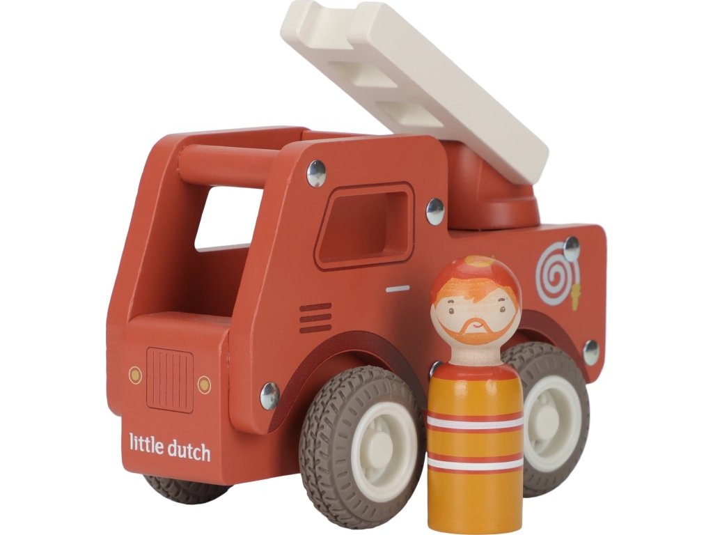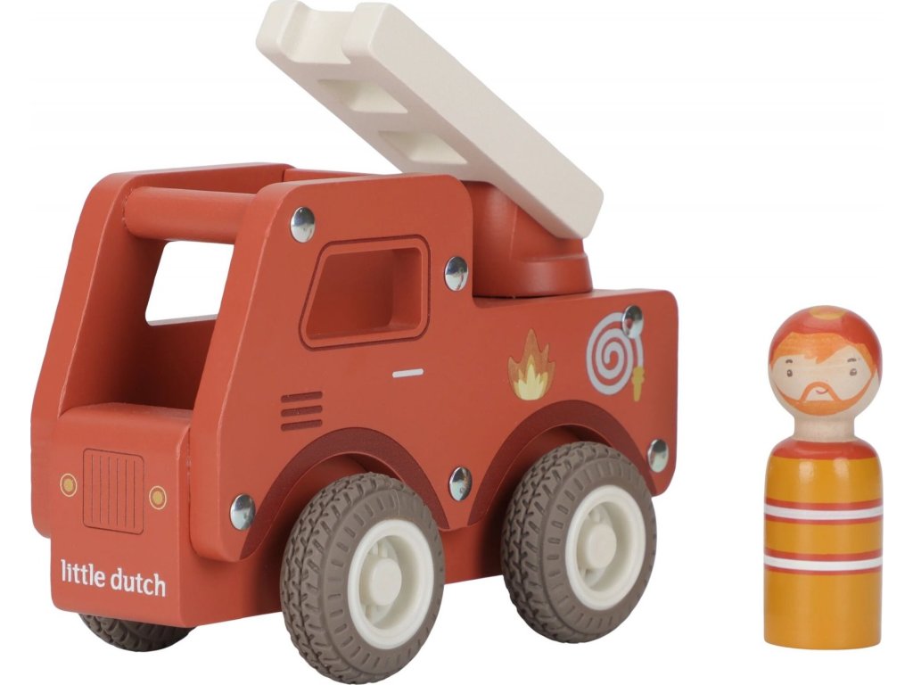 S tímto dřevěným hasičským autem budete vždy připraveni vyrazit do akce! Vozidlo je vybaveno výsuvným žebříkem a odvážným hasičem v podobě dřevěné figurky. Díky robustní konstrukci a gumovým pneumatikám je jízda plynulá a bezpečná na každém povrchu.