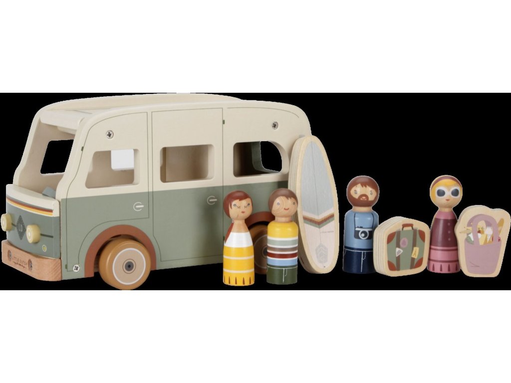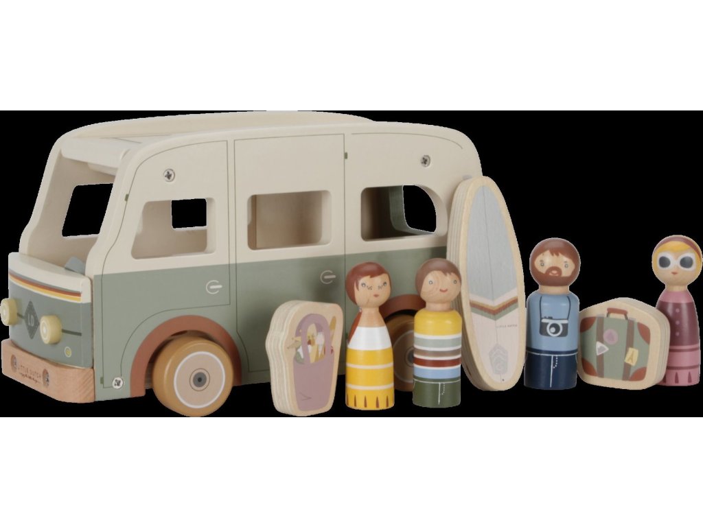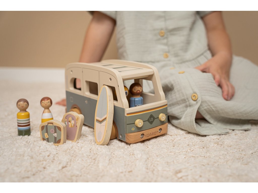 Obsah balení: karavan, 4 figurky, kufr, taška s jídlem a surf.
