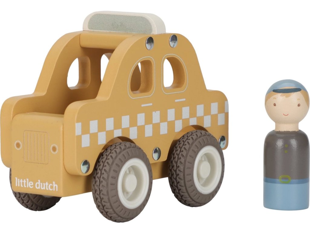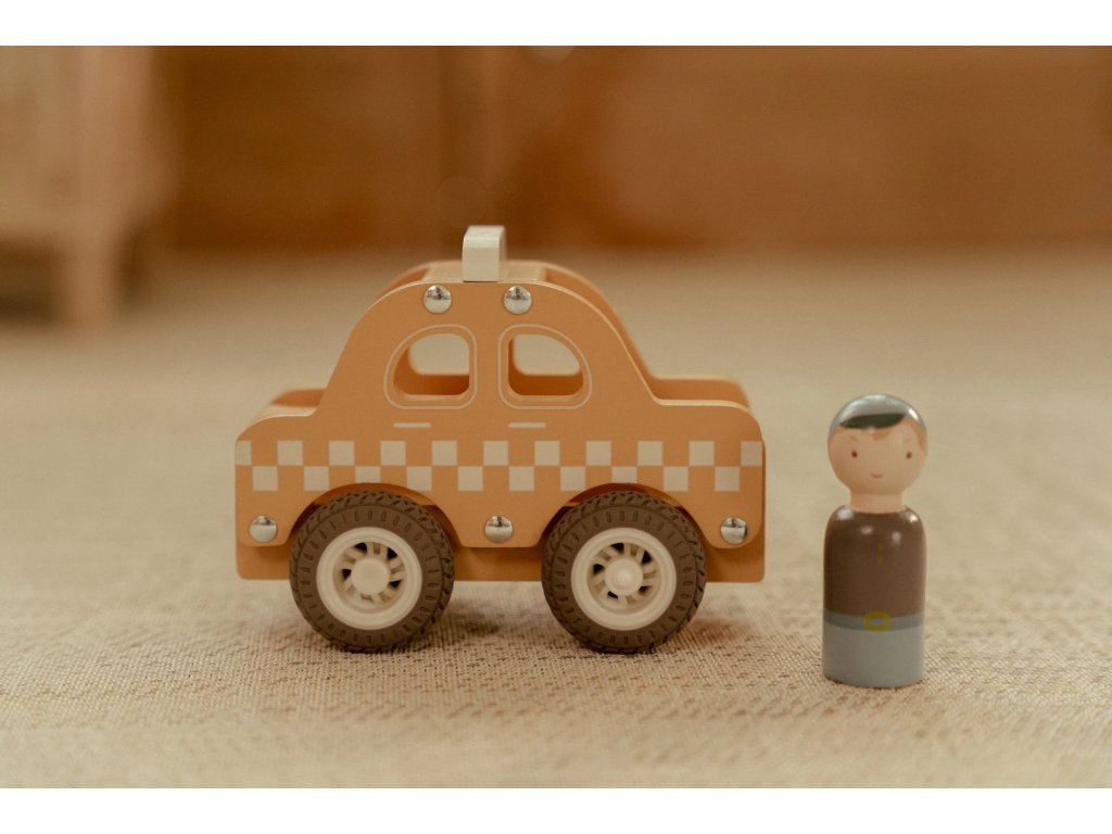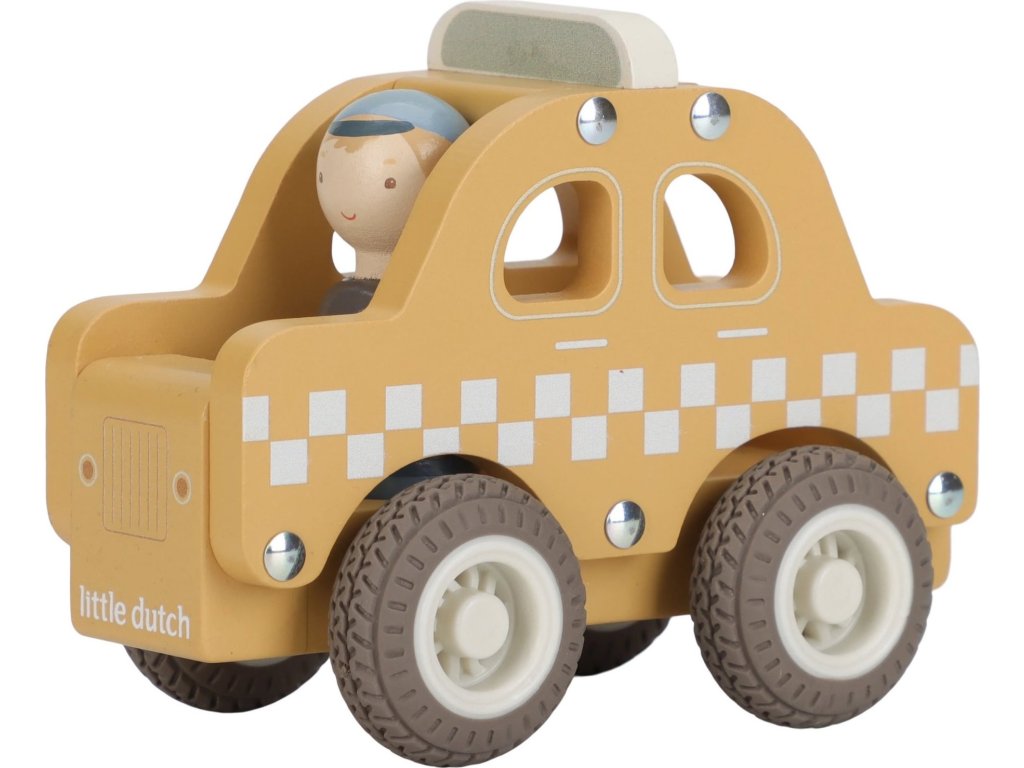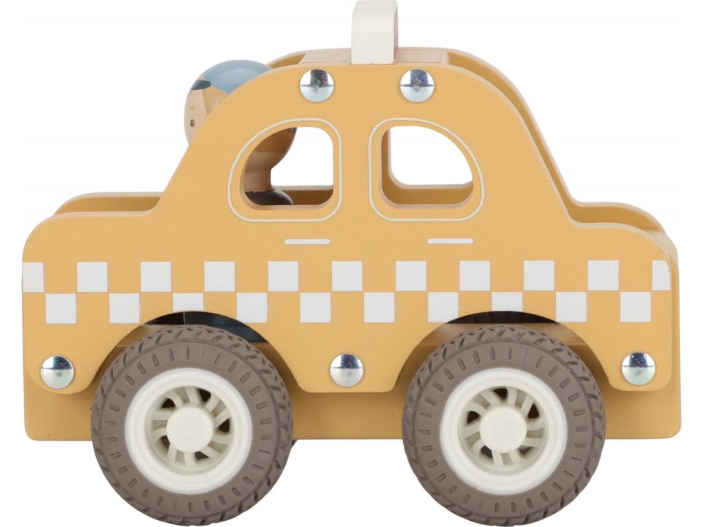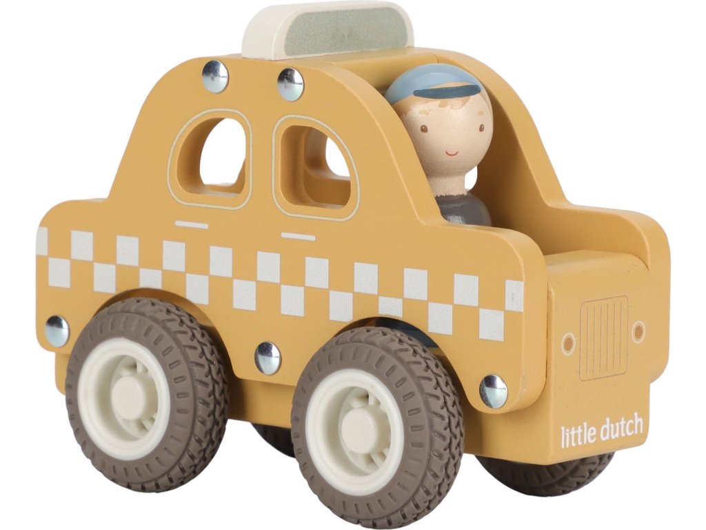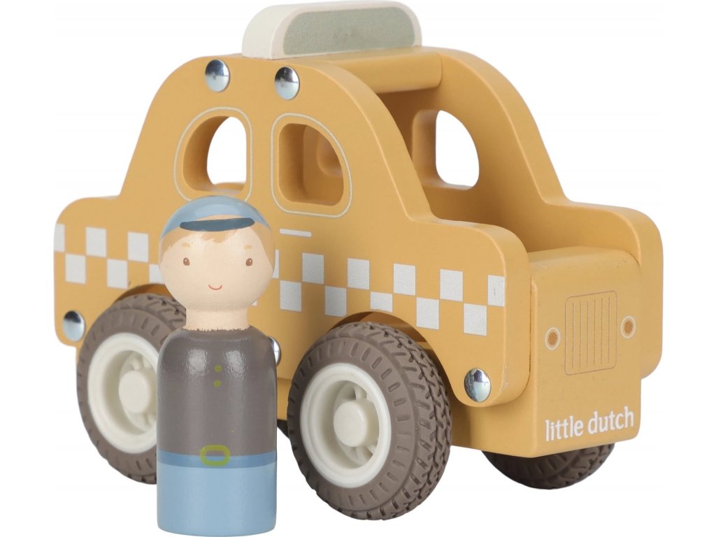 Naskočte a nechte se odvézt! Toto dřevěné taxi je připraveno bezpečně dopravit každého cestujícího do cíle. Díky gumovým pneumatikám se hladce pohybuje po podlaze, a sympatický řidič už čeká, až vyrazíte na cestu.