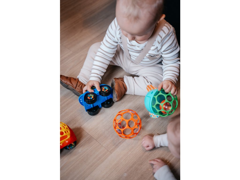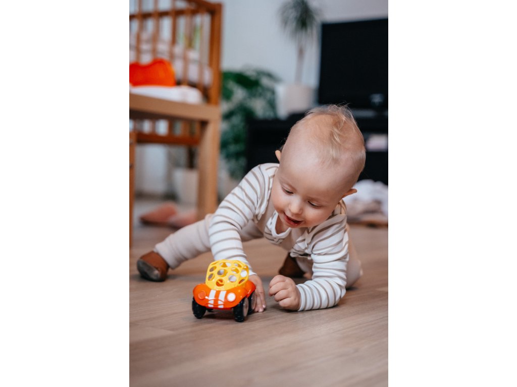 Moje první autíčko Oball chrastí a jezdí! Měkké, tvarovatelné, vhodné i jako kousátko.