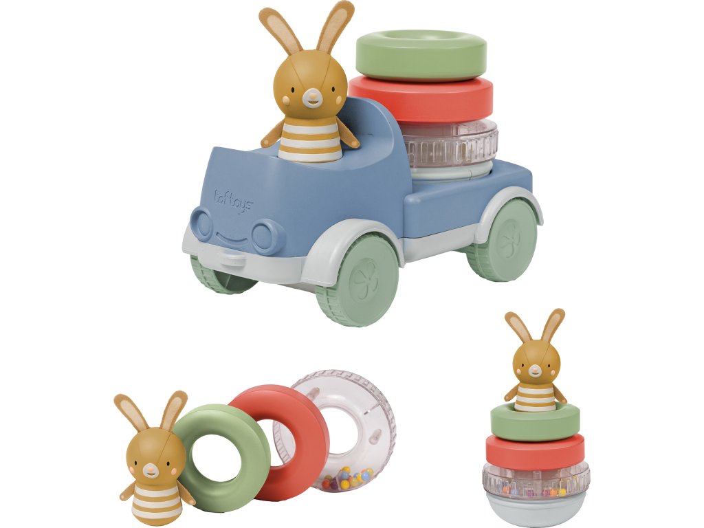 - Hračka 2 v 1: Náklaďák se sundávací barevnou pyramidou z kroužků a zajíčkem řidičem nabízí dvě fáze hry, které rozvíjí rozpoznávání, motorické dovednosti a podporují fantazii.