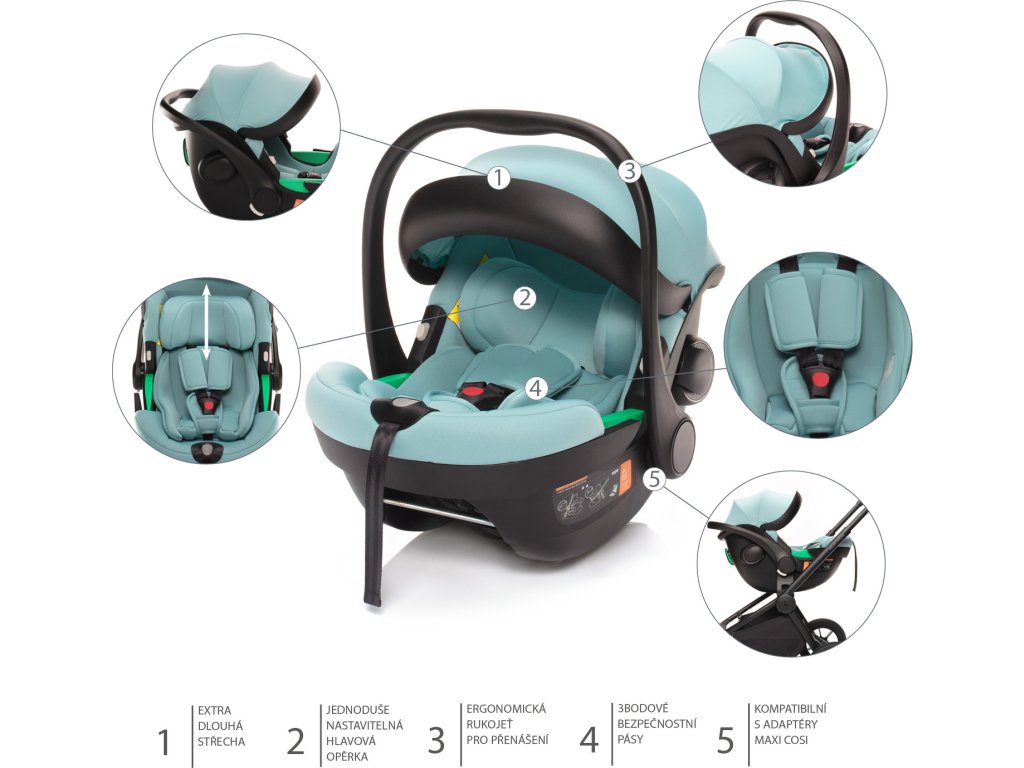 Extra dlouhá stříška je nezávislá od rukojeti, díky tomu můžete používat rukojeť k přenášení autosedačky i bez zatažené stříšky, či naopak. Stříška chrání dítě proti ostrému sluníčku, větru případnému menšímu dešti. Ergonomická rukojeť byla navržena tak, aby co nejvíce usnadnila přenášení. 3 bodové bezpečnostní pásy vám usnadní upínání dítěte do autosedačky a jednoduše nastavitelná hlavová opěrka dopomůže k snadnému nastavení pohodlí pro vaše děťátko, přičemž se takto přizpůsobí tomu, jak dítě roste. Navíc s nastavováním opěrky hlavy rovnou nastavujete i výšku pásu. Pro maximální pohodlí je hlavová opěrka vyplněná paměťovou pěnou. V zadní části autosedačky je praktické odvětrávání. Pro komfort novorozených miminek přichází autosedačka XM s kvalitní novorozeneckou vložkou až do 75 cm výšky dítěte.