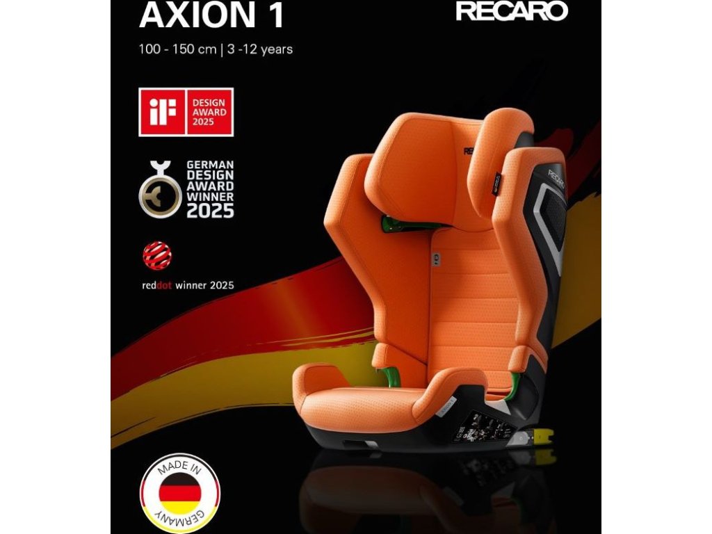 Zcela nová dětská autosedačka Axion1 od německé firmy Recaro vyniká pohodlím, prostorem a nízkou hmotností. Její jedinečný design v kombinaci se svěží a zářivou barvou Hello Green a vzorem na potahu vyjadřuje použité materiály a inovaci v oblasti bezpečnosti. Dětem od 100 do 150 cm což odpovídá cca 3-12 rokům nabízí maximální ochranu a vynikající pohodlí i na nejdelších cestách. Rodičům nízkou hmotnost a velmi snadnou instalaci po směru jízdy.