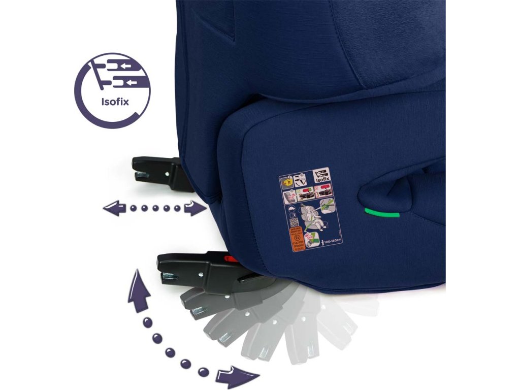 Nastavitelné konektory Isofix usnadňují instalaci autosedačky. Barevné indikátory na konektorech umožňují ověřit správnou instalaci.