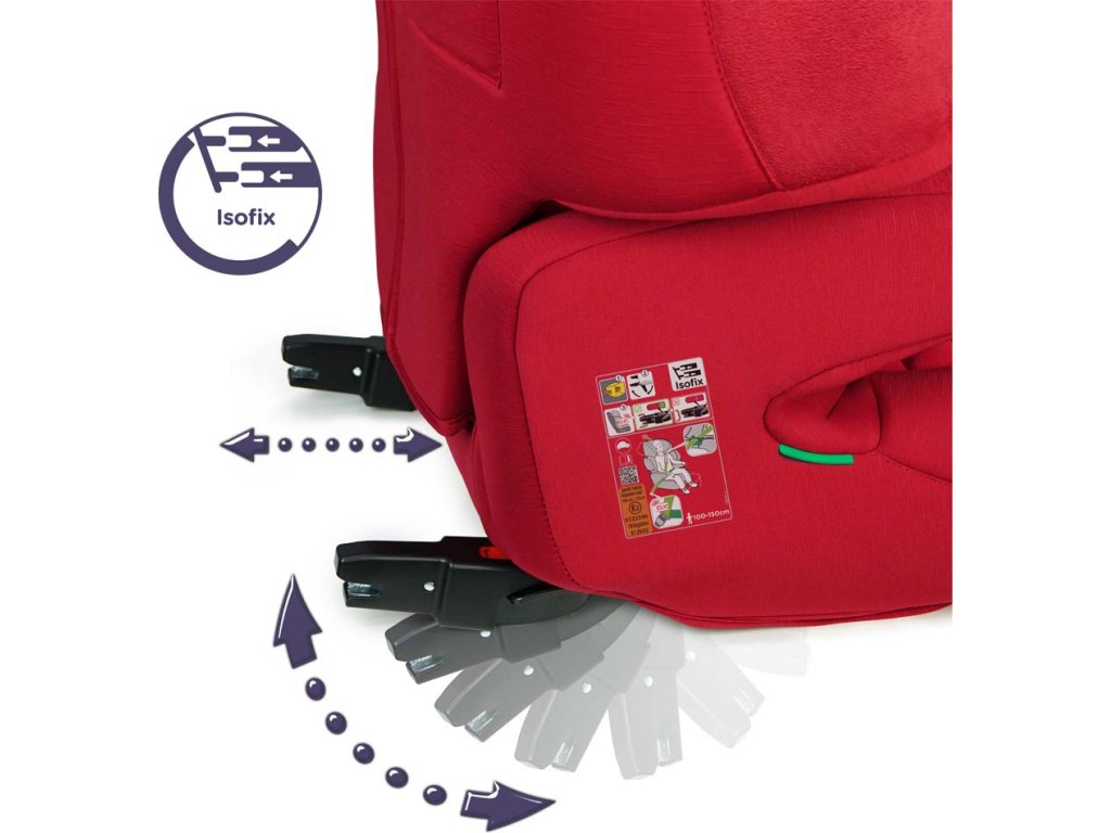 Nastavitelné konektory Isofix usnadňují instalaci autosedačky. Barevné indikátory na konektorech umožňují ověřit správnou instalaci.