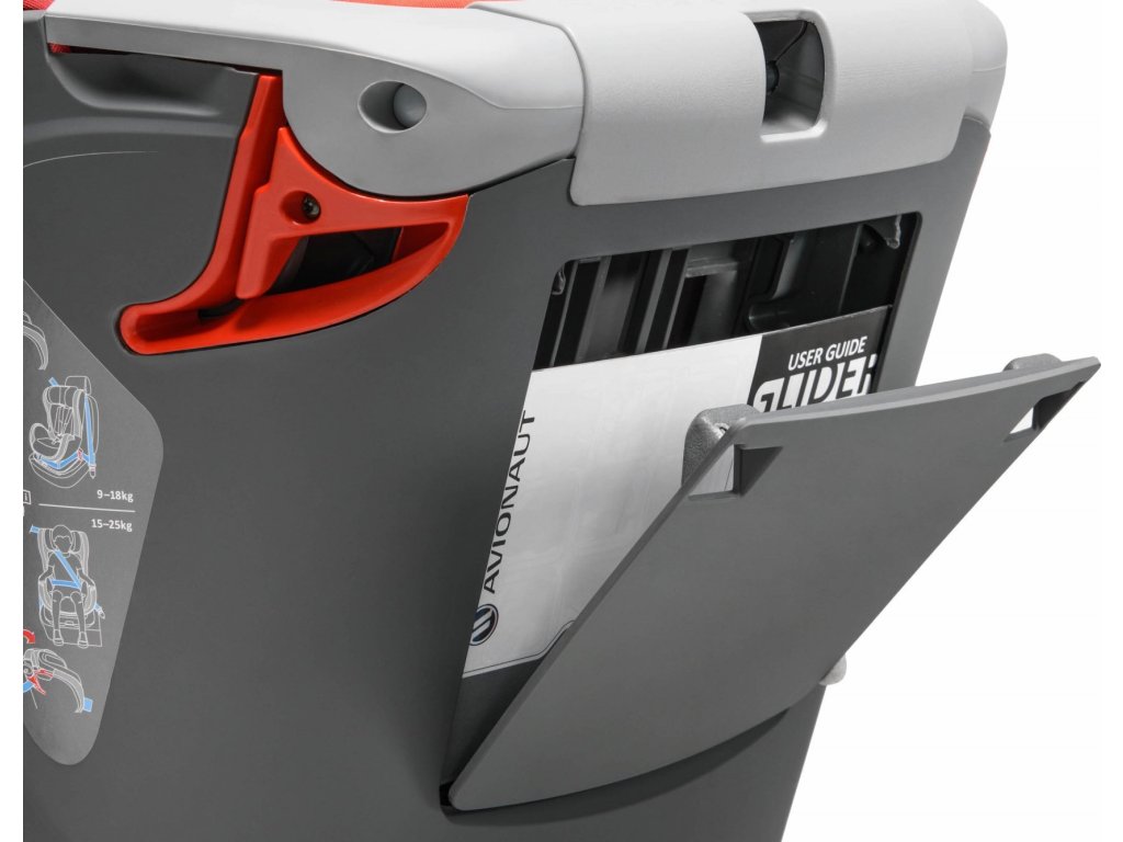 Díky schránce na návod k použití v zadní části autosedačky máte vždy návod po ruce.