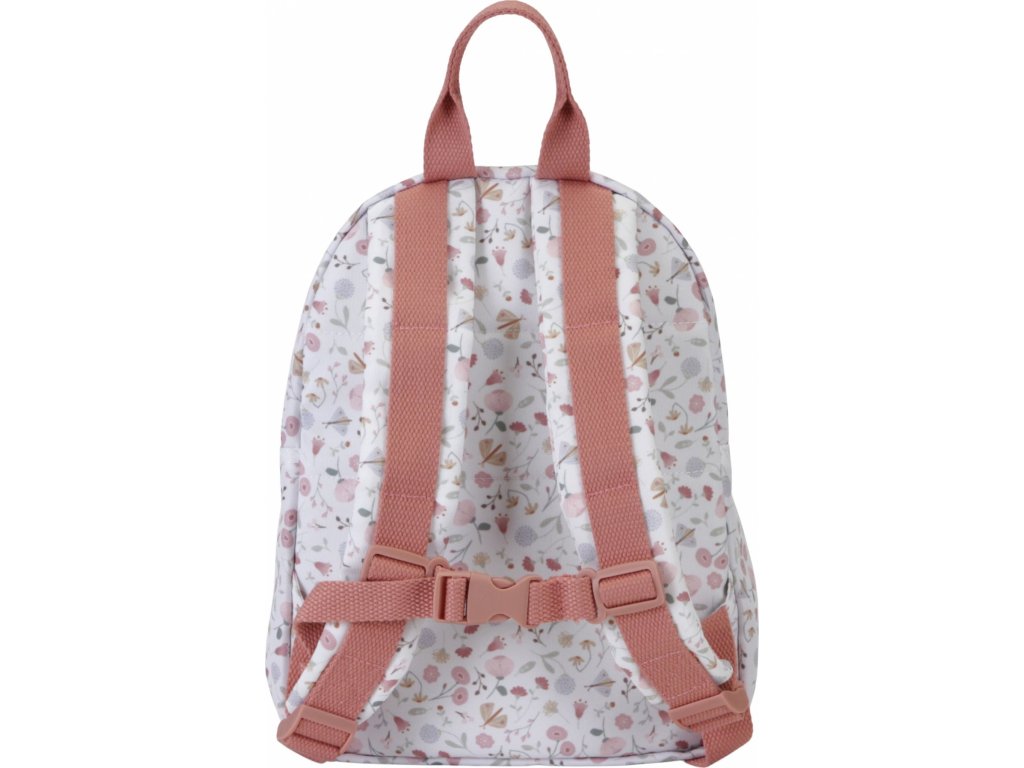 Roztomilý dětský batůžek potištěný květinovými motivy je ideálním doplňkem na výlety do přírody i procházky městem. Batůžek má nastavitelné ramenní popruhy a hrudní pás pro příjemné nošení. Držadlo umožňuje přenášení v ruce. Baťůžek je vybaven vnější kapsou na zip pro uložení drobností a vnitřní prostor s kapsou, elastickým držákem na pití a jmenovkou, .