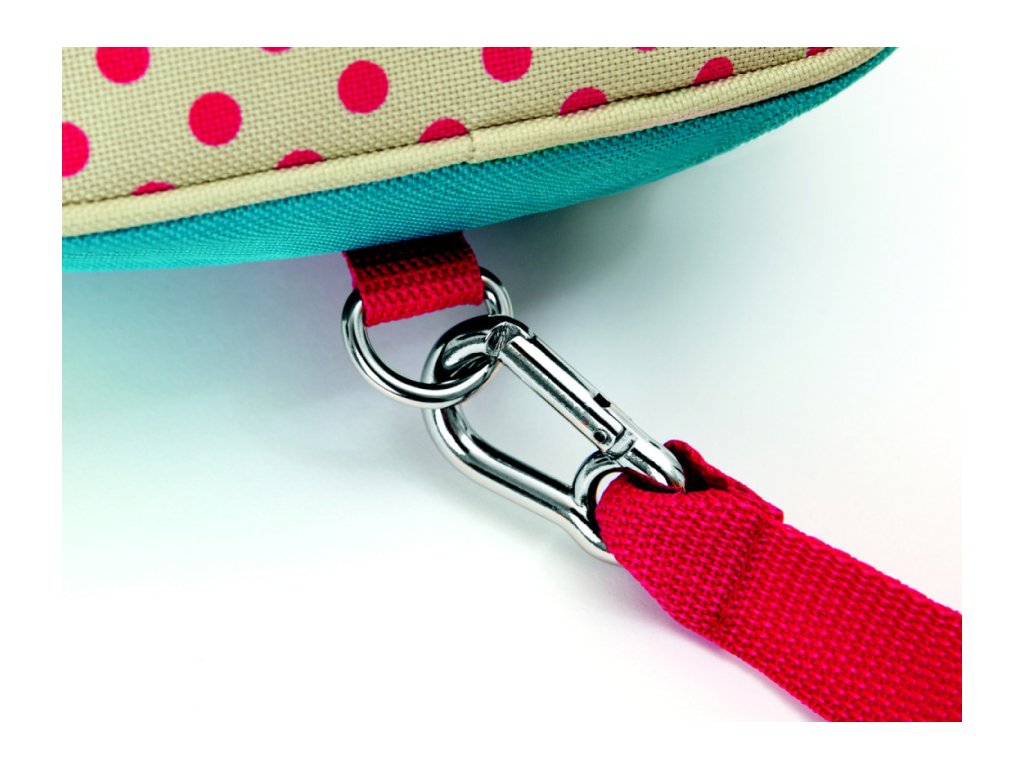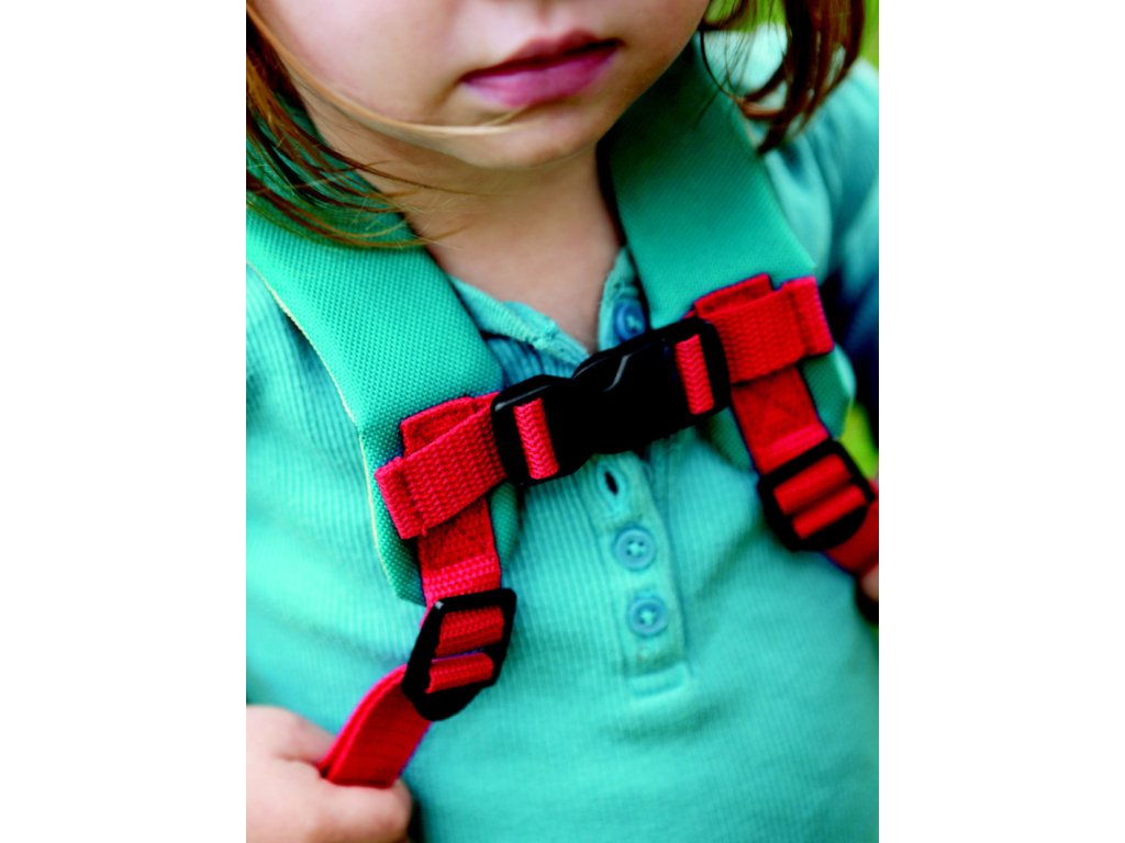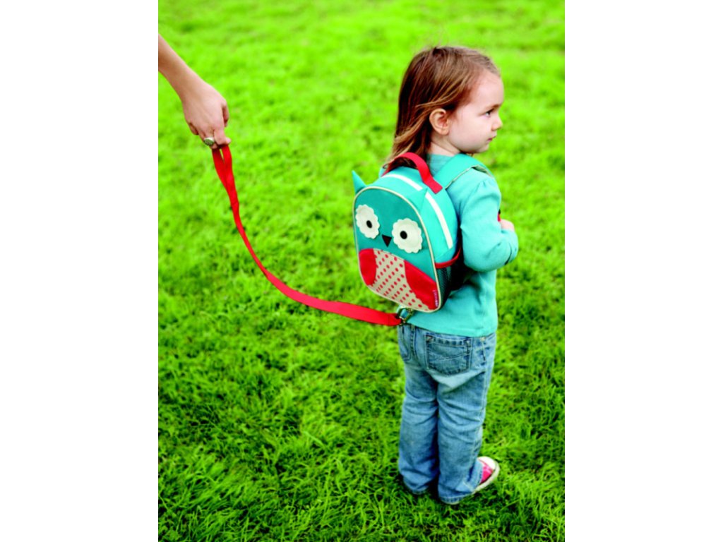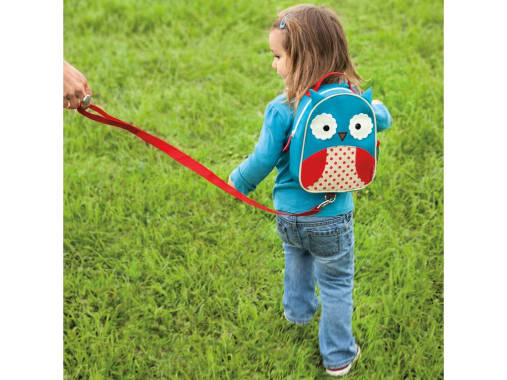 Upravte oba ramenní popruhy na ramena dítěte. Upněte hrudní pásek/zacvakněte sponu. Nastavte správnou délku ramenních popruhů dle postavy vašeho dítěte. Dle potřeby připněte bezpečnostní pásek pomocí stříbrné karabinky, kterou připevníte ke stříbrnému poutku ve tvaru „D“. Krásný batůžek ve stylu Skip Hop s bezpečnostním páskem. Pásek lze dle potřeby odepnout/připnout. Batůžek má polstrované nastavitelné ramenní popruhy, ucho pro přenášení, hlavní kapsu na zip, síťovanou boční kapsičku na pitíčko a jmenovku, aby se batůžek neztratil. Jednoduchá údržba. Obsahuje 0 % BPA, bez ftalátů.