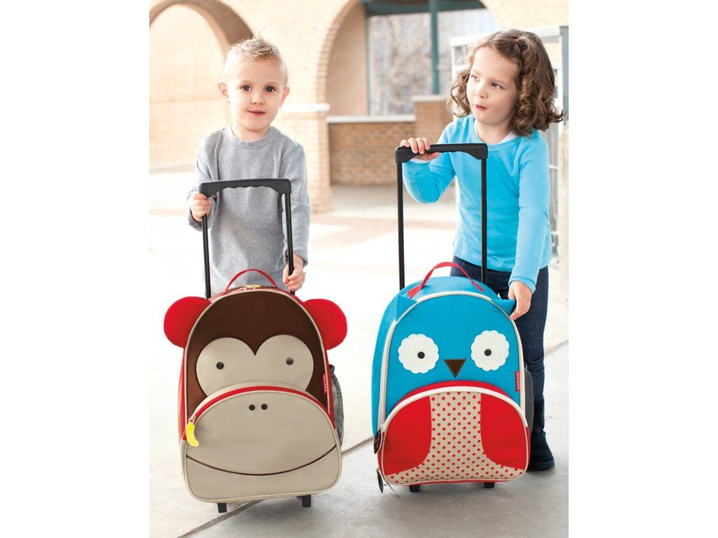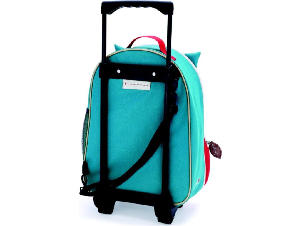 Kufr má, stejně jako ostatní produkty z kolekce Zoo, propracované detaily, aby co nejvíce připomínal dané zvíře. Nechybí tedy ouška či zipy různych tvarů. Kufr má přední kapsu s malou kapsičkou, která je ideální pro věci, jenž chce mít Vaše dítě při ruce, jako např. oblíbené hračky či pastelky. Hlavní kapsa pak poslouží na uložení oblečení, knížek apod. Nechybí pak ani sí'tovaná kapsa na boční strane. Dětský kufr od firmy Skip Hop má kolečka a vytahovací rukojeť až o 33 cm. V případě, že je dítě již unaveno, má kufr odnímatelný nastavitelný popruh pro rodiče. Na zadní straně kufru je také štítek pro napsání jména, aby se neztratil mezi ostatními kamarády ze Zoo.
