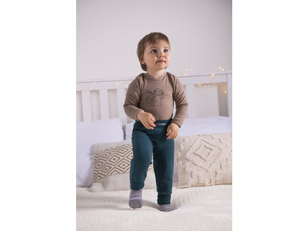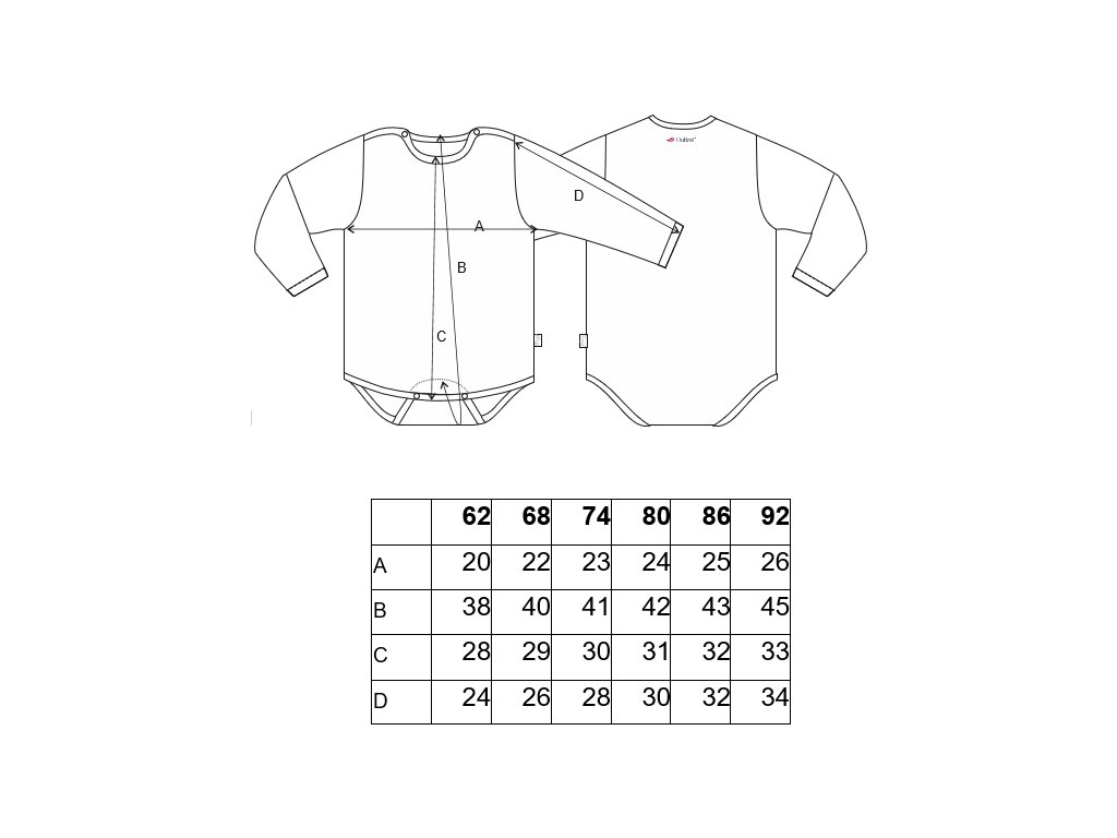 Body ze silného úpletu s dlouhým rukávem skvěle využijete především v chladných měsících. Je vhodné jako spodní vrstva při oblékání na ven, ale v kombinaci s tepláky nebo dupačkami je možné jej nosit i doma. Body je vyrobeno z pružného příjemného materiálu, který se přizpůsobí více velikostem. Maminky jistě ocení zapínání na druky u krku a v rozkroku, díky kterému se body velmi lehce a rychle obléká. Při výrobě tohoto body byl použitý materiál Outlast® ve smykové variantě, která je z líce hladká a z rubu má smyčky. Materiál Outlast® dokáže během nošení regulovat tělesnou teplotu, odvádět přebytečné teplo a zabránit propocení. Ve chvíli, kdy tělesná teplota klesne, materiál Outlast® nahromaděné teplo uvolní a začne tělo zahřívat. Oblečení z materiálu Outlast® je díky svým termoregulačním vlastnostem velmi oblíbené, neboť zajišťuje teplotní komfort po celou dobu nošení. Body s dlouhým rukávem je vhodné na podzimní, zimní a jarní měsíce.