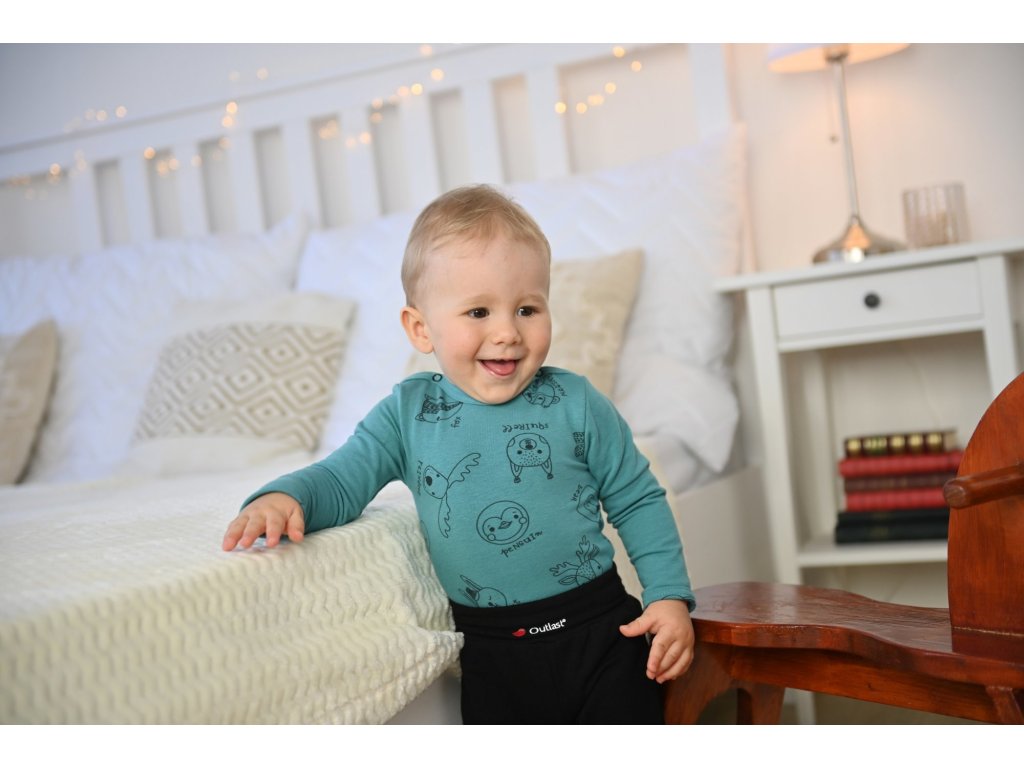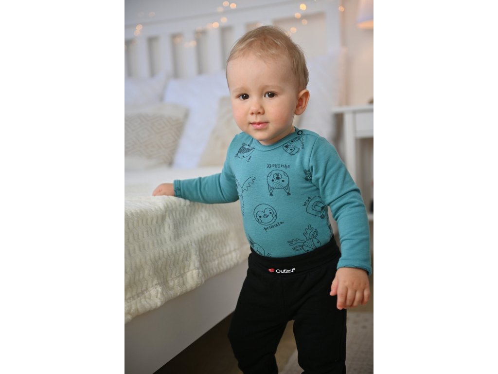 Body ze silného úpletu s dlouhým rukávem skvěle využijete především v chladných měsících. Je vhodné jako spodní vrstva při oblékání na ven, ale v kombinaci s tepláky nebo dupačkami je možné jej nosit i doma. Body je vyrobeno z pružného příjemného materiálu, který se přizpůsobí více velikostem. Maminky jistě ocení zapínání na druky u krku a v rozkroku, díky kterému se body velmi lehce a rychle obléká. Při výrobě tohoto body byl použitý materiál Outlast® ve smykové variantě, která je z líce hladká a z rubu má smyčky. Materiál Outlast® dokáže během nošení regulovat tělesnou teplotu, odvádět přebytečné teplo a zabránit propocení. Ve chvíli, kdy tělesná teplota klesne, materiál Outlast® nahromaděné teplo uvolní a začne tělo zahřívat. Oblečení z materiálu Outlast® je díky svým termoregulačním vlastnostem velmi oblíbené, neboť zajišťuje teplotní komfort po celou dobu nošení. Body s dlouhým rukávem je vhodné na podzimní, zimní a jarní měsíce.