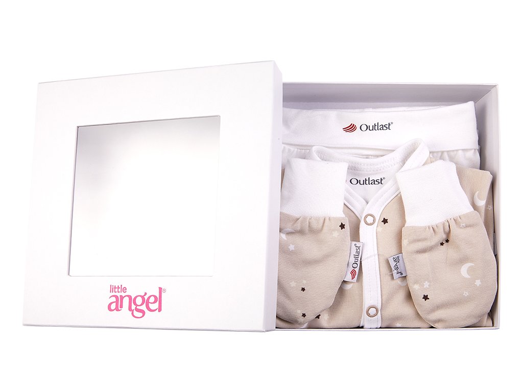 Little Angel novorozenecká sada BIO Outlast® - béžová hvězdičky/bílá
