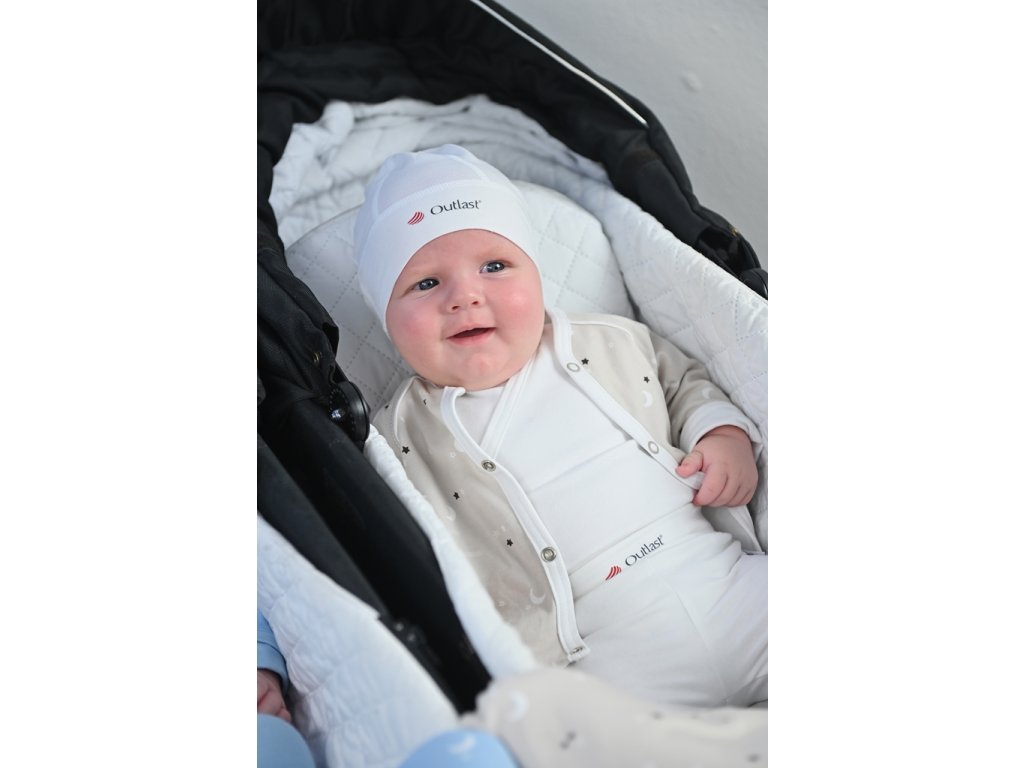 Materiál Outlast® dokáže během nošení regulovat tělesnou teplotu, odvádět přebytečné teplo a zabránit propocení. Ve chvíli, kdy tělesná teplota klesne, materiál Outlast® nahromaděné teplo uvolní a začne tělo zahřívat. Oblečení z materiálu Outlast® je díky svým termoregulačním vlastnostem velmi oblíbené, neboť zajišťuje teplotní komfort po celou dobu nošení. Vyrovná tak teplotu pokožky vašich nejmenších. Dítě bude stále v teple, avšak nebude se přehřívat.