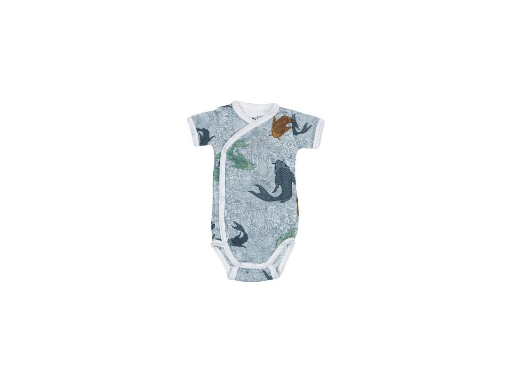 LODGER Romper Short Sleeves Empire Fish Dusty Turquoise vel. 80