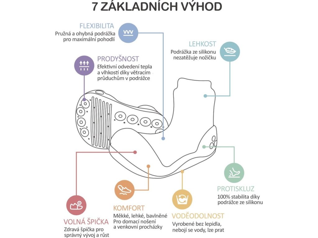 - Prodyšnost. Prodyšná podrážka, díky které dětská noha může dýchat a nezapařuje se.