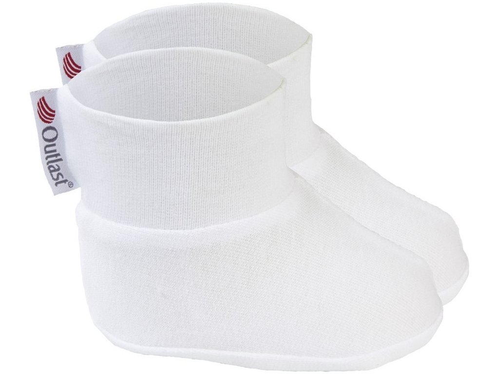 Bačkorky pro novorozence® jsou ušity ze silnějšího bavlněného úpletu s příměsí materiálu Outlast®. Díky materiálu Outlast® vytvářejí ideální teplotní podmínky a omezují pocení až o 40%. Použitý materiál nevyvolává alergické reakce a je inertní vůči plísním a bakteriím. Pouze ve velikosti 0. Materiál: 67% bavlna, 29% Outlast®, 4% elastan, lícová strana hladká, na rubu smyčky. Údržba: praní - 40°C, žehlení - 1 tečka, sušička - může se sušit v bubnové sušičce při nižší teplotě sušení, chem. čištění - zákaz, bělení - zákaz, nepoužívat aviváž. Doporučujeme dodržovat prací symboly uvedené na etiketě.