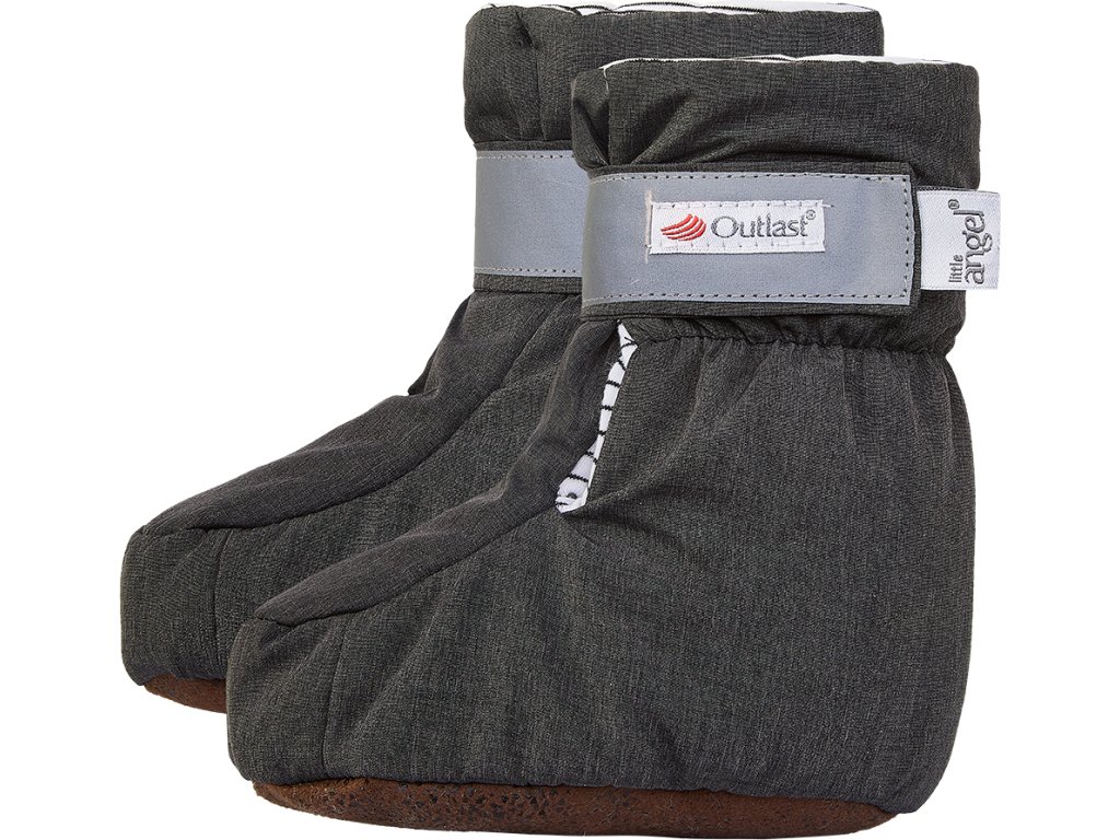 Šusťákové bačkorky s reflexním proužkem u paty zahřejí nožky v kočárku i v autosedačce. Bačkorky mají zpevněnou podrážku a zapínají se kolem kotníku pomocí pásku na suchý zip. Tento pásek je vyroben z reflexního materiálu, který zvýší viditelnost dítěte potmě. Bačkorky jsou podšité měkkým bavlněným úpletem s přidaným materiálem Outlast®. Termoregulační materiál Outlast® se vyznačuje svou schopností reagovat na tělesnou teplotu nositele. Ve chvíli, kdy se tělo příliš zahřeje, materiál Outlast® odvede nadbytečné teplo pryč od těla a zabrání propocení dítěte. Pokud tělesná teplota klesne, materiál Outlast® uschované teplo uvolní a použije k zahřátí těla. Díky těmto vlastnostem materiál Outlast® zaručuje snížení nadbytečného pocení a teplotní komfort po celou dobu nošení.
