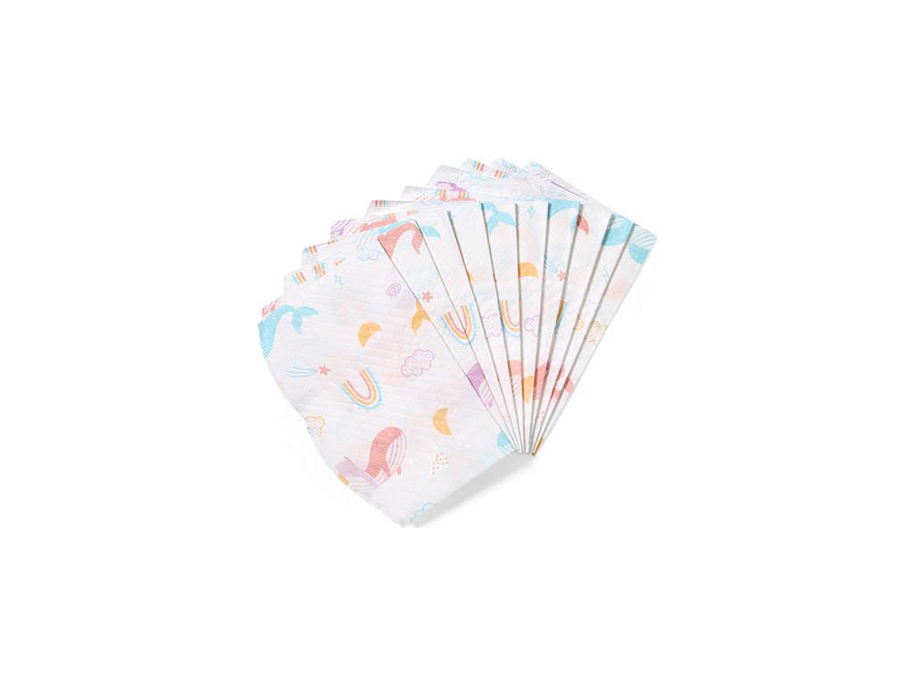 Připravte se k jídlu bez nečistot s jednorázovými dětskými bryndáčky a vyhněte se stresu z krmení děťátka kdekoli jste. Bryndáčky jsou měkké, pevné a mají voděodolnou podkladovou vrstvu, která chrání oblečení vašeho děťátka před zašpiněním. Mají také sáček na drobky a zbytky jídla. Jednorázové bryndáčky se skvěle hodí pro použití doma i na cestách. Jsou skvělou alternativou k tradičním bryndákům a pomohou ochránit oblečení vašeho děťátka při zkoušení nových potravin.