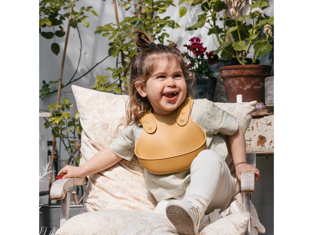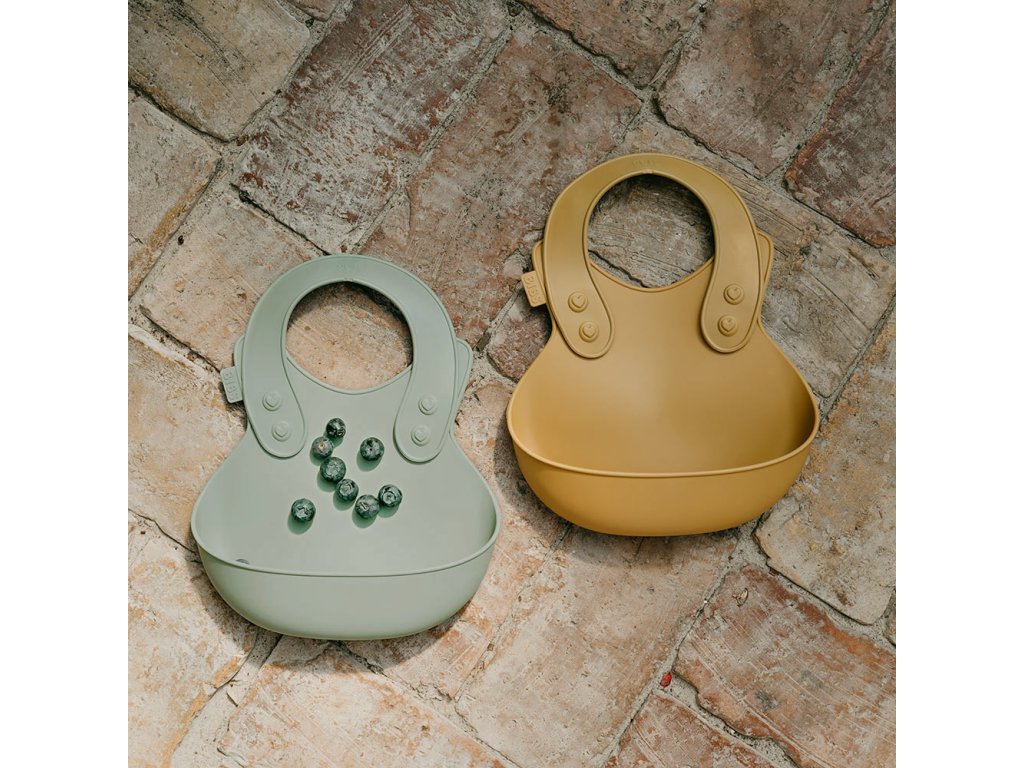 BIBS je obľúbená dánska značka s tradíciou výroby ikonických cumlíkov od roku 1978. Okrem cumlíkov BIBS ponúka aj pestrý prémiový sortiment pre najmenšie deti v minimalistickom škandinávskom dizajne a širokej farebnej palete. Všetky BIBS produkty sú garanciou najvyššej kvality detského sortimentu. Podbradníky BIBS boli navrhnuté tak, aby vyhovovali predovšetkým najmenším členom rodiny. Samozrejmosťou je dokonale prepracovaný každý detail: Anatomický tvar Deti potrebujú mať pri kŕmení voľný pohyb rúk, aby sa necítili obmedzované. BIBS podbradník je preto medzi ramenami zúžený, perfektne sadne aj okolo krku a dieťatku neprekáža v pohybe. Zapínanie BIBS myslel aj na to, aby sa detské vlásky pri zapínaní podbradníka nezachytávali. Preto sa inšpiroval klasickými detskými dupačkami a umiestnil zapínanie vpredu, kde sa s ním jednoduchšie manipuluje. Podbradník má tri rôzne veľkosti zapínania. Klokanie vrecko Praktický tvar podbradníka zachytáva kúsky padajúceho jedla a pomáha tak udržať detské oblečenie dlhšie čisté. Niektoré deti využívajú vrecko aj na odkladanie malých snackov a postupne ich vďaka podbradníku papajú popri hre. Roztomilé detaily Pekným detailom sú štyri drobné srdiečka, ktoré zdobia práve miesto, kde sa podbradník zapína. Materiál Podbradníky sú vďaka starostlivo zvolenému materiálu ľahké a pohodlné, dostatočne mäkké na to, aby dieťatko netlačili pri opieraní sa o stôl a zároveň dostatočne pevné, aby sa pri pohybe nevlnili a nevypadávali z nich kúsky jedla. Zloženie : 100% potravinársky TPU 100% bez BPA a ftalátov 100% recyklovateľné Čistenie: Podbradníky sa jednoducho čistia a sú dobre odolné voči olejom, tukom a potravinárskym farbivám. Je možné ich umývať v umývačke riadu aj pri vyšších teplotách s použitím čistiacich prostriedkov. Balenie: Podbradníky sú balené v peknej darčekovej BIBS krabičke, ktorej jednotlivé časti nie sú zlepené, takže obal je jednoduché rozobrať a správne recyklovať. Navrhnuté a vyrobené v Dánsku.