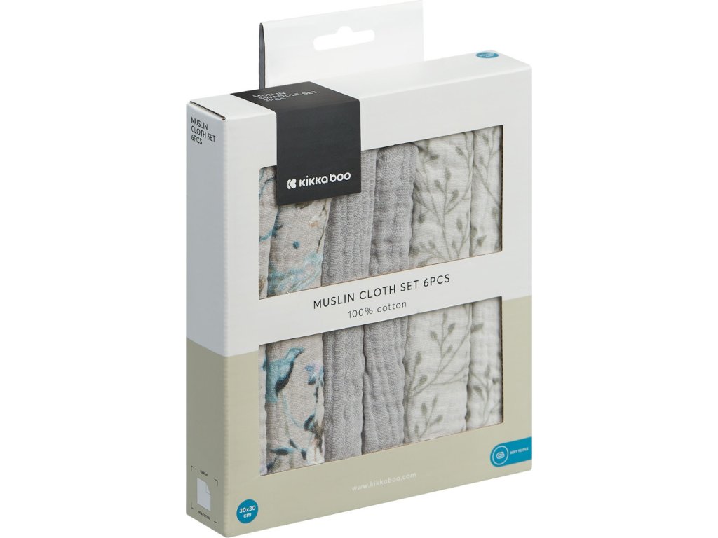 KikkaBoo Pleny mušelínové 30x30 cm 6ks Dreamy Fields Grey