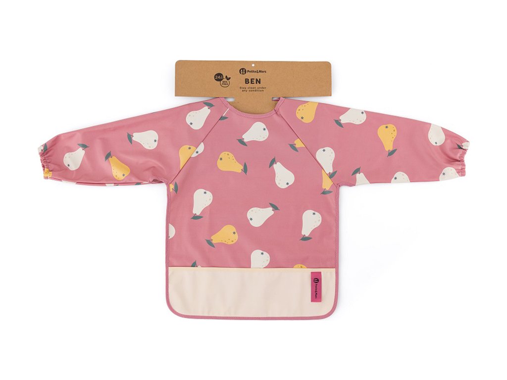 Pohodlný, nepromokavý bryndák s dlouhým rukávem je vyroben z rychleschnoucího, bezpečného PU materiálu, zcela bez PVC a ftalátů. Přední kapsa na drobky zajistí pořádek a pohodlí při krmení a dlouhé rukávy s gumičkou chrání oblečení před zašpiněním a namočením. Bryndák je velmi jemný na dotek a zapíná se na měkký suchý zip. Lze jej používat nejen při jídle, ale také při výtvarných pracích. Chcete-li jej udržet v čistotě, po použití jej jednoduše otřete vlhkým hadříkem.