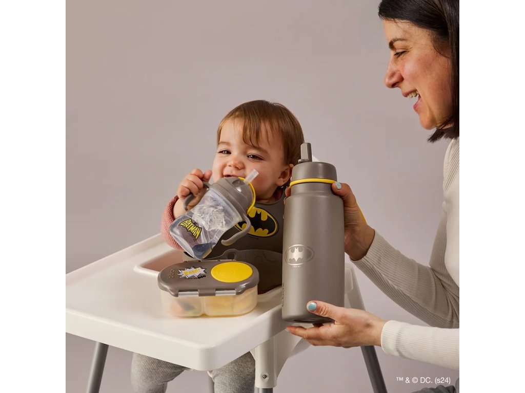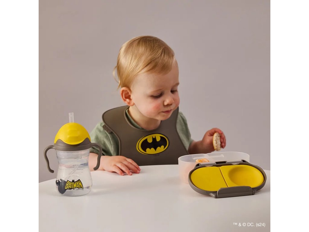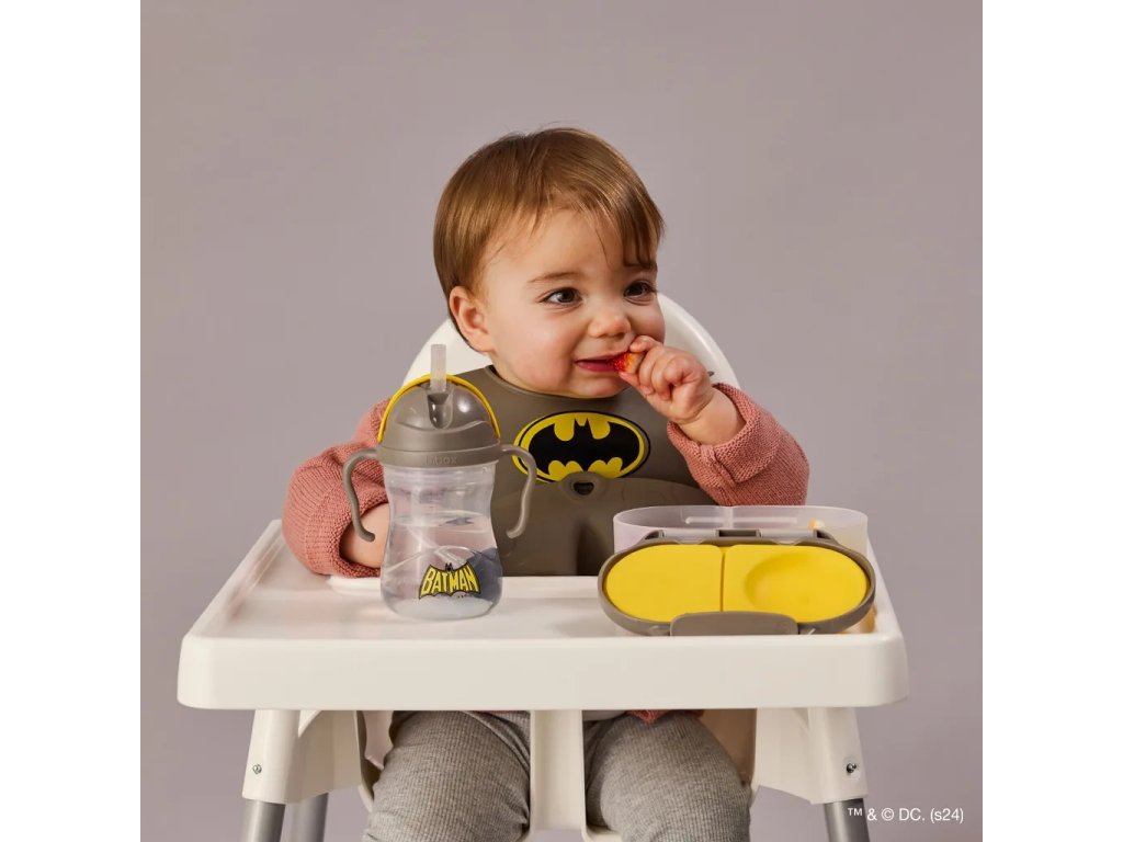 Stylový silikonový bryndák s hlubokou kapsou a motivem Temného rytíře přinese radost ke každému jídlu a zároveň pomůže udržet oblečení čisté. S plným bříškem a menším nepořádkem kolem bude váš malý superhrdina připraven na každé další dobrodružství.