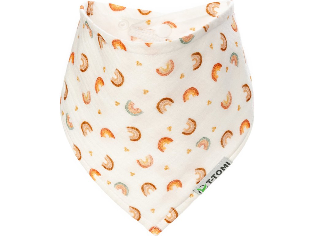 Kvalitní a stylové – to jsou naše nové mušelínové slintáčky T-TOMI. Jsou vyrobeny ze 100%, mimořádně jemné a vzdušné bavlny. Praktické zapínání na dvě patentky umožňuje jednoduchou regulaci velikosti. Mušelínový slintáček T-TOMI je vhodný jak pro čerstvě narozená miminka tak i pro starší děti. Design našich slintáčků je rozmanitý a navržen tak, aby uspokojil každého zákazníka.