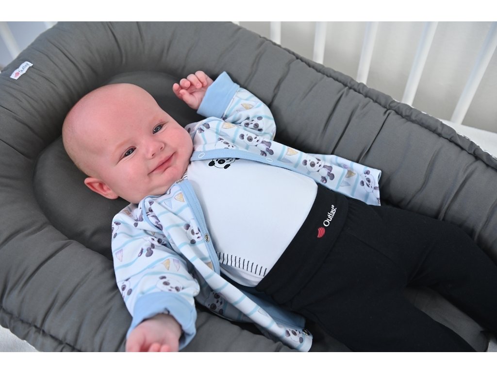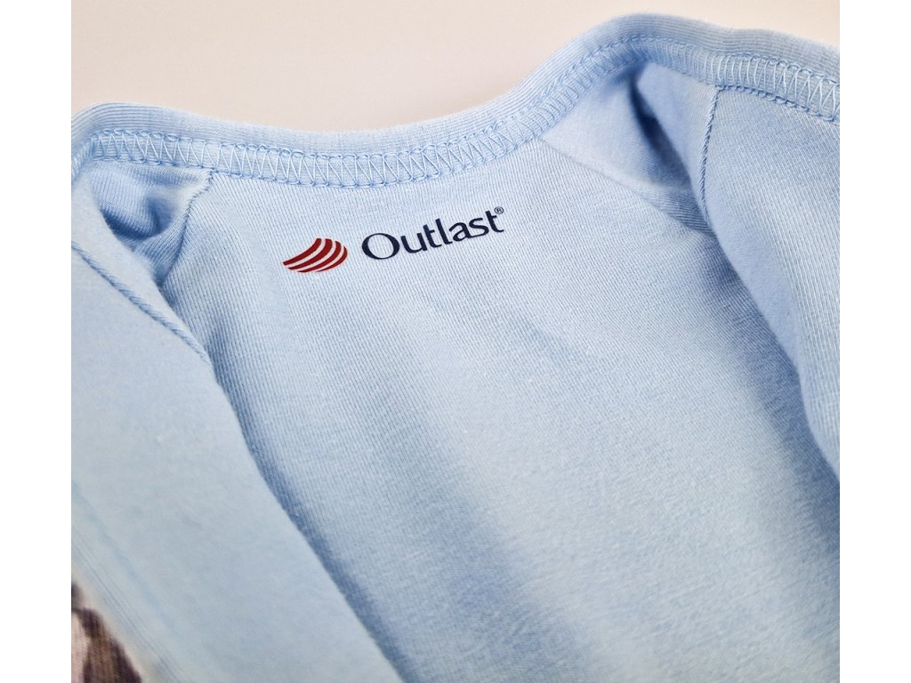 Podšitý kabátek Outlast® je stylový kousek do chladných měsíců. Vrchní strana kabátku je z měkkého bavlněného úpletu, vnitřní podšitou část tvoří materiál Outlast® s bavlnou. Tento materiál je oblíbený především díky svým termoregulačním schopnostem, kdy přebytečné teplo odvádí od těla a zabraňuje pocení. Nahromaděné teplo dokáže Outlast® uvolnit ve chvíli, kdy teplota klesne. Dítě se cítí komfortně po celou dobu nošení. Kabátek je módního střihu, zapíná se pomocí druků na přední straně a rukávky kabátku můžete ohrnout do manžety. Materiál kabátku je velmi pružný a přizpůsobivý, takže vydrží i více velikostí.