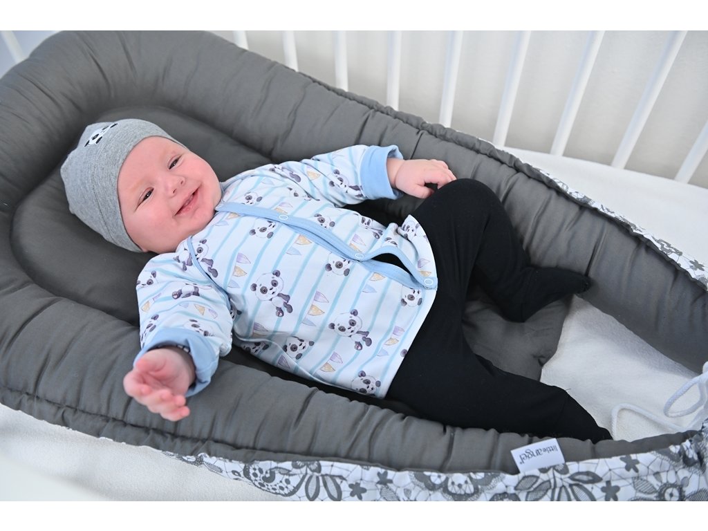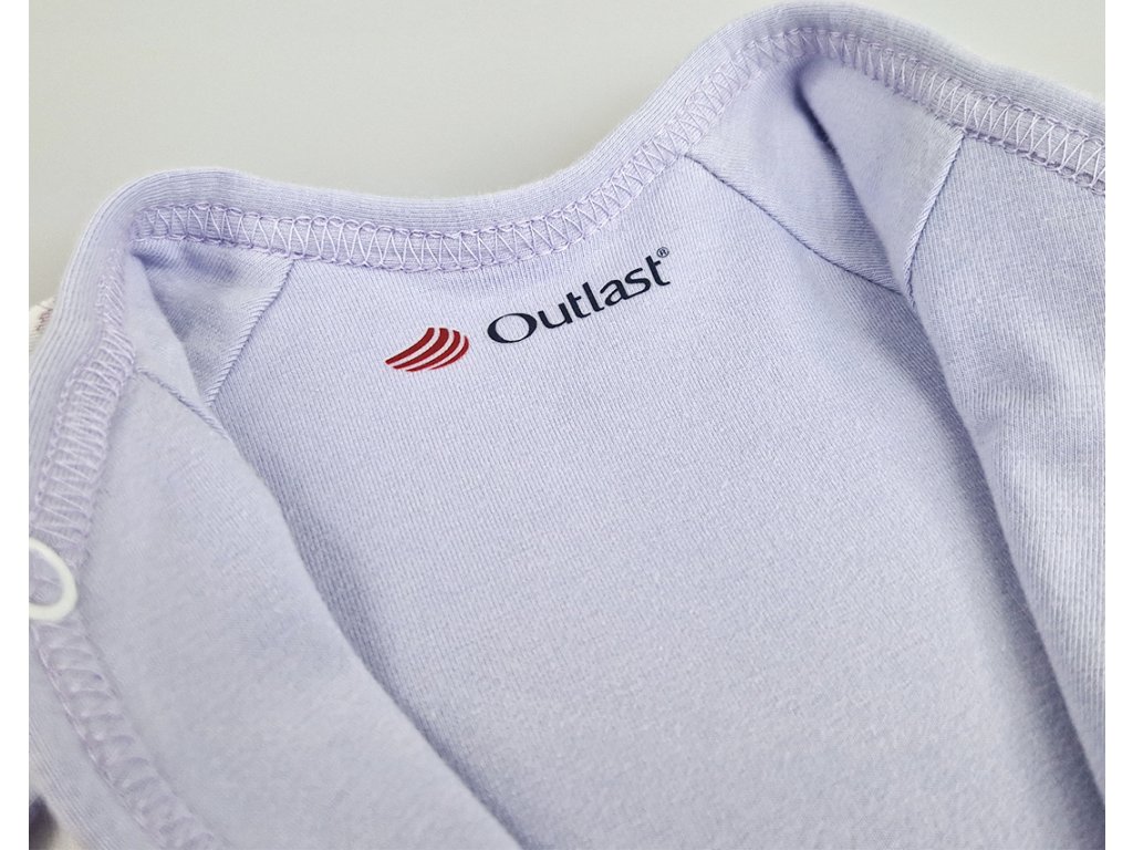 Podšitý kabátek Outlast® je stylový kousek do chladných měsíců. Vrchní strana kabátku je z měkkého bavlněného úpletu, vnitřní podšitou část tvoří materiál Outlast® s bavlnou. Tento materiál je oblíbený především díky svým termoregulačním schopnostem, kdy přebytečné teplo odvádí od těla a zabraňuje pocení. Nahromaděné teplo dokáže Outlast® uvolnit ve chvíli, kdy teplota klesne. Dítě se cítí komfortně po celou dobu nošení. Kabátek je módního střihu, zapíná se pomocí druků na přední straně a rukávky kabátku můžete ohrnout do manžety. Materiál kabátku je velmi pružný a přizpůsobivý, takže vydrží i více velikostí.