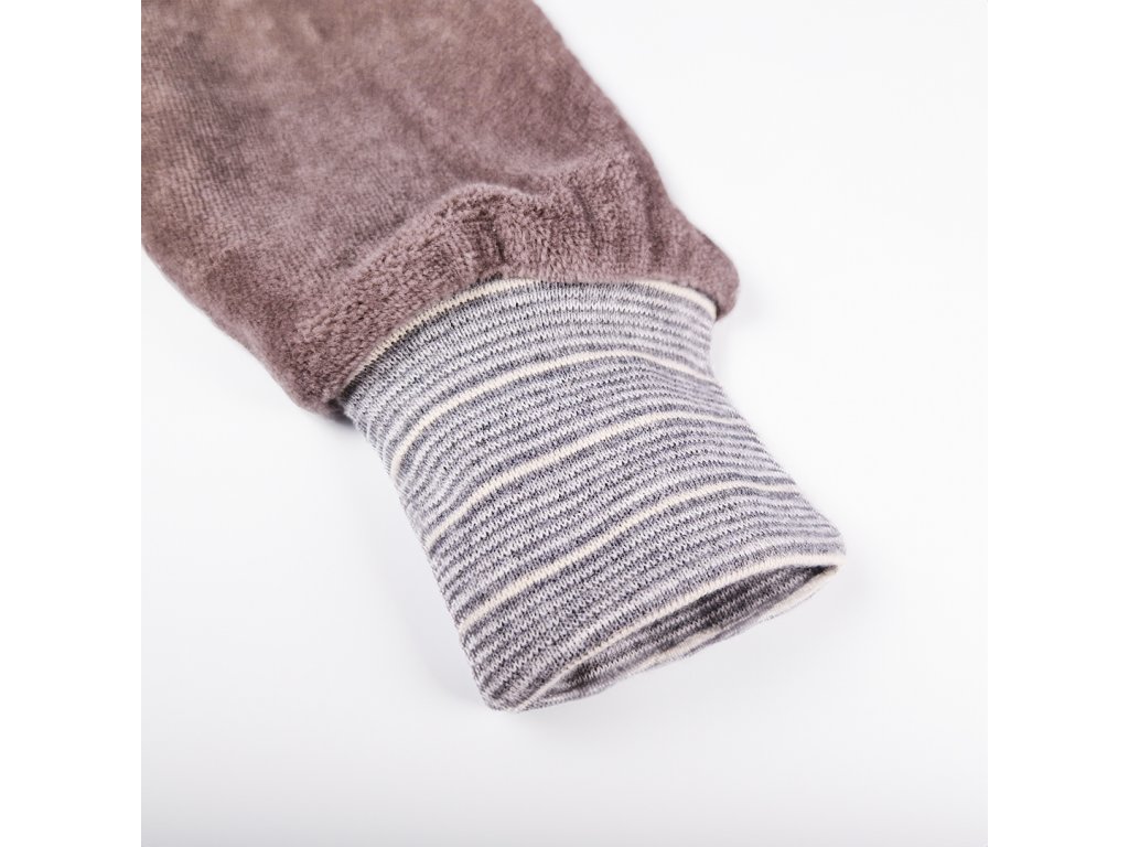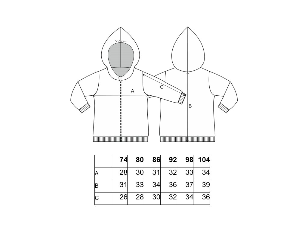 Rukávy mikiny jsou ukončeny širokými náplety, které můžete ohrnout a přizpůsobit délku rukávů aktuální velikosti dítěte. Tímto způsobem se mikina přizpůsobí více velikostem a dítě ji může nosit o to déle. Spodní část mikiny je opatřena lemem, který zaručí pohodlné nošení bez vykasávání zad.