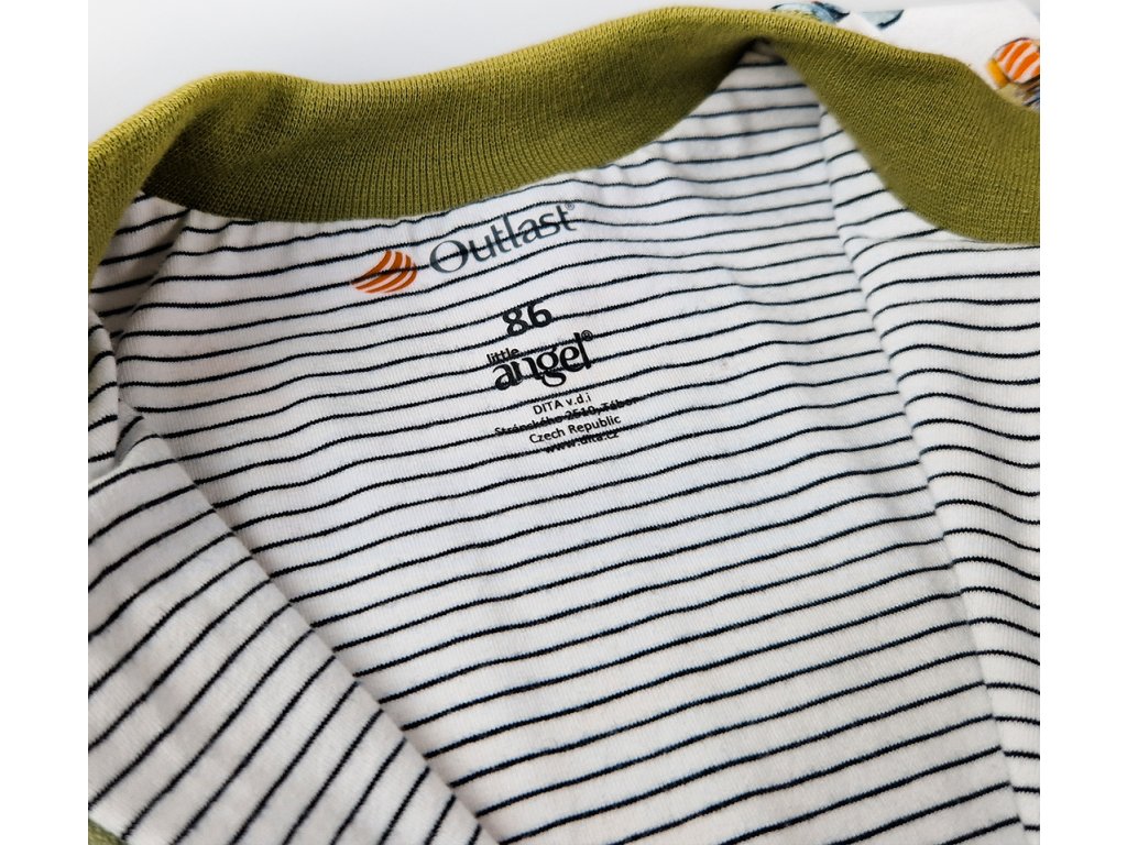 Při výrobě mikiny byl použit termoregulační materiál Outlast®. Materiál Outlast® je populární díky svým termoregulačním vlastnostem, které zajišťují dítěti teplotní komfort za jakékoliv situace. Materiál Outlast® dokáže chytře pracovat s tělesným teplem, při nadměrném zahřátí nadbytečné teplo odvede pryč od těla a zabrání propocení dítěte. Ve chvíli, kdy tělesná teplota klesne, materiál Outlast® teplo uvolní a tělo zahřeje. Dítě se tak může bezstarostně věnovat veškerým aktivitám a nemusíte se bát, že by se propotilo, nebo naopak prochladlo.