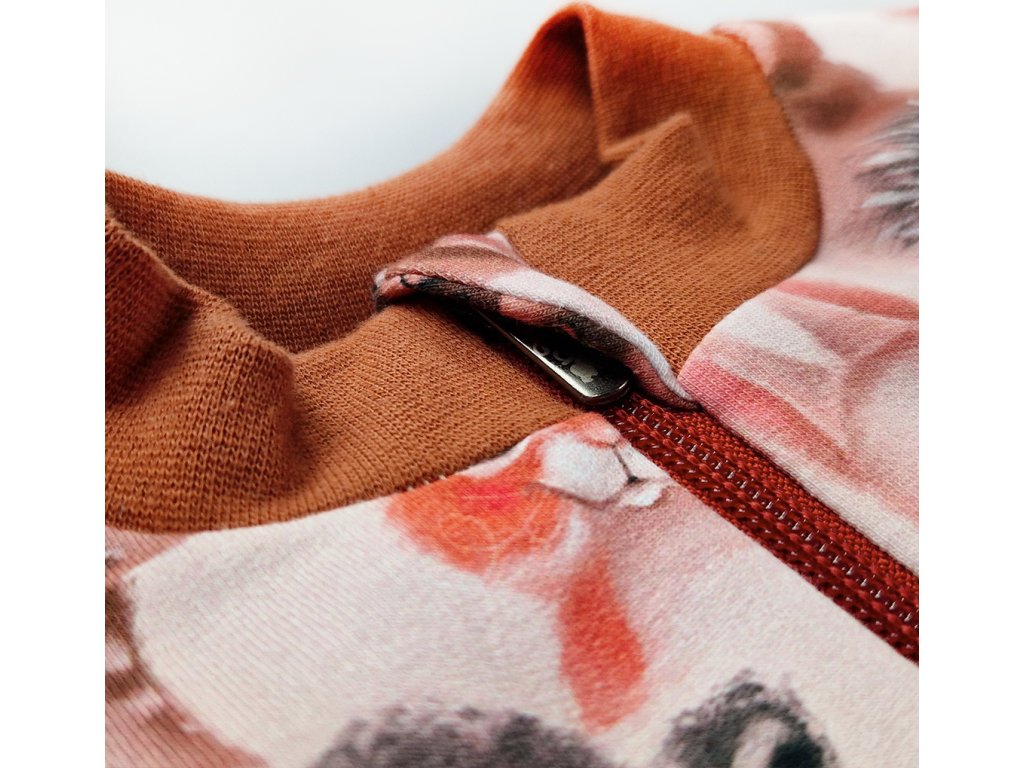 Pohodlná dětská podšitá mikina s kapsami je správnou volbou pro volný čas i na vycházky do města. Mikina má vepředu praktické zapínání na zip a u krku je zakončena slušivým stojáčkem. Po zapnutí můžete jezdec zipu schovat do speciální krytky a zabránit tak otlačení brady. Na předním díle mikiny v oblasti prsou je umístěna ozdobná aplikace s reflexní hvězdou, která zvýší viditelnost dítěte ve tmě. Rukávy mikiny jsou ukončeny širokými náplety, které můžete ohrnout a přizpůsobit délku rukávů aktuální velikosti dítěte. Tímto způsobem se mikina přizpůsobí více velikostem a dítě ji může nosit o to déle. Náplet ukončuje mikinu a díky tomu poskytuje komfortní nošení, podpoří nevykasávání.
