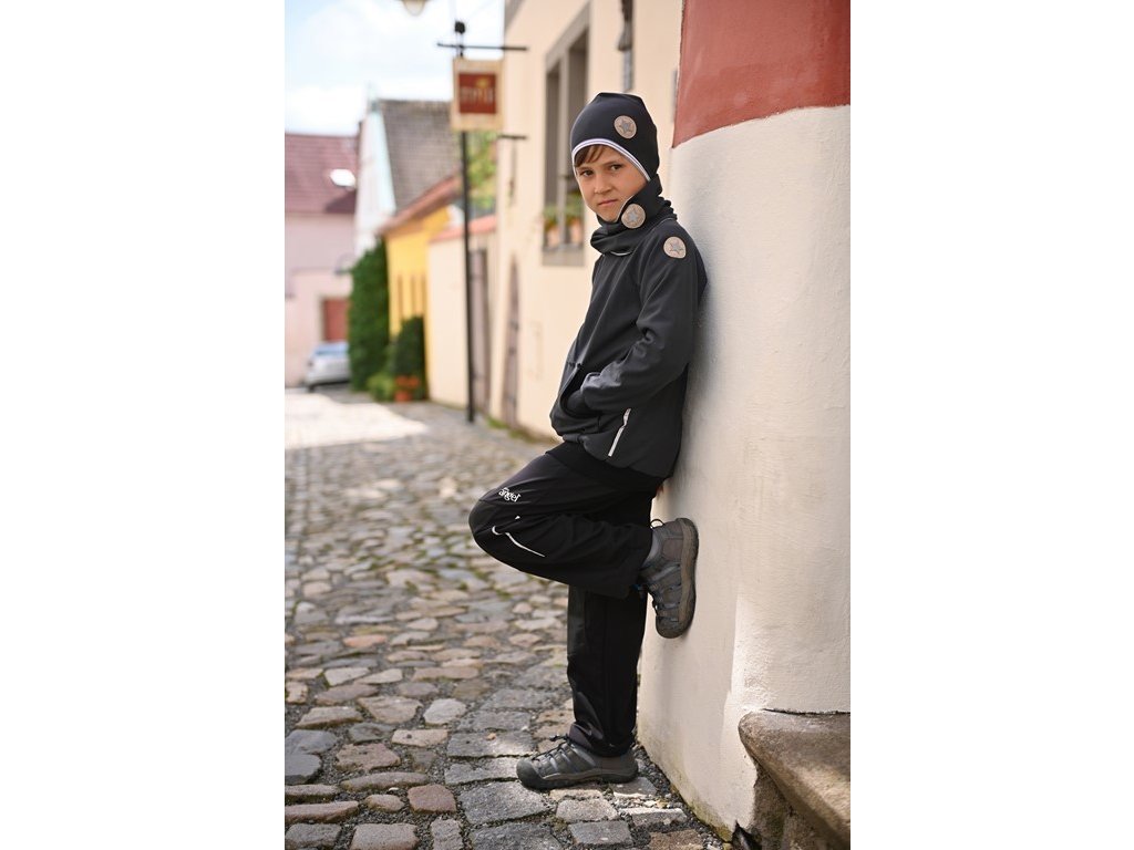 Vepředu má praktické zapínání na zip a u krku je zakončena slušivým stojáčkem. Po zapnutí můžete jezdec zipu schovat do speciální krytky a zabránit tak otlačení brady. Na rukávu je našito reflexní logo ve tvaru hvězdy na koženkovém podkladu. Navíce je mikina doplněna i o reflexní potisk, který je umístěn na zádech mikinky. Kolem zipu je navíc reflexní lem, který ještě více podpoří vyšší viditelnost ve tmě.