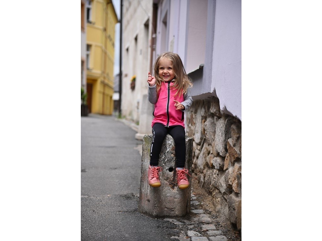 Pohodlná a stylová dětská vestička s kapsami je správnou volbou pro volný čas i na vycházky do města. Vesta má vepředu praktické zapínání na zip a u krku je zakončena slušivým stojáčkem. Po zapnutí můžete jezdec zipu schovat do speciální krytky a zabránit tak otlačení brady. Na předním díle mikiny v oblasti prsou je umístěna ozdobná aplikace reflexního loga Little Angel. Díky reflexním prvkům zvýšíte viditelnost vašich nejmenších! Jsou jak na zadní, tak na přední straně vesty - logo, proužky kolem zipu, potisk na zádíčkách.