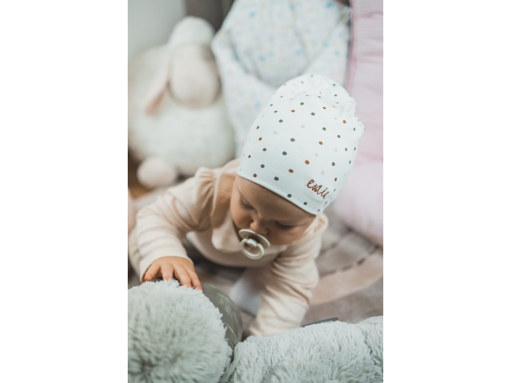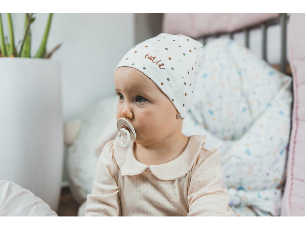 enie baby Dětská čepice 6-9m DOTS CREME