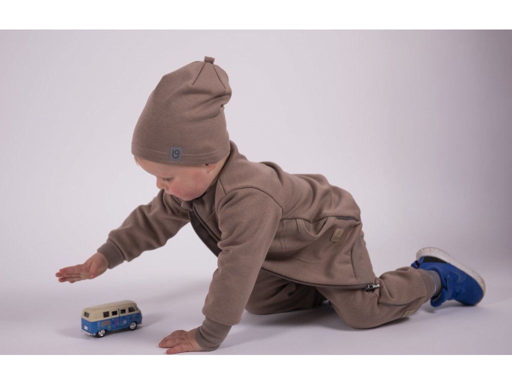 Čepice je vyrobena z velmi příjemného, hebkého a hřejivého bavlněného materiálu s polyesterem a elastanem. Uvnitř čepice je jemný hřejivý chloupek. Dítě tak má zajištěnou teplotní pohodu po celou dobu nošení. Je doplněna o reflexní prvek loga, který je našit na přední straně čepičky.