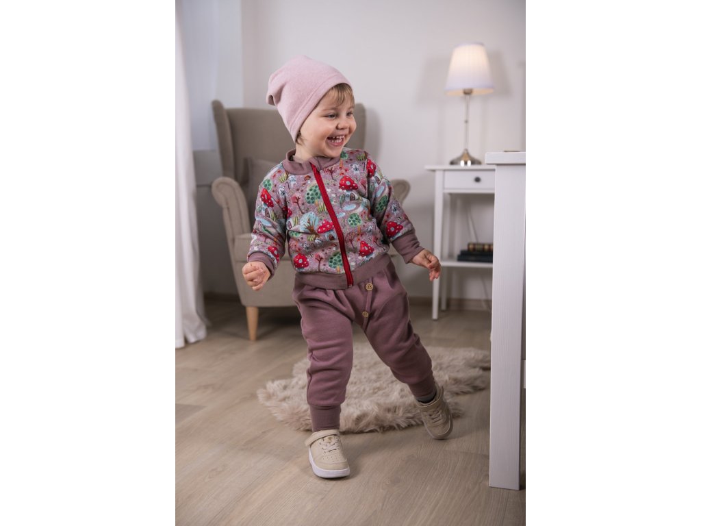 Čepice je vyrobena z velmi příjemného, hebkého a hřejivého bavlněného materiálu s polyesterem a elastanem. Uvnitř čepice je jemný hřejivý chloupek. Dítě tak má zajištěnou teplotní pohodu po celou dobu nošení. Je doplněna o reflexní prvek loga, který je našit na přední straně čepičky.