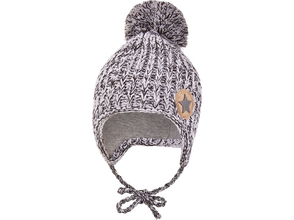 Little Angel Čepice pletená zavazovací bambule LA Outlast ® - bílošedý melír