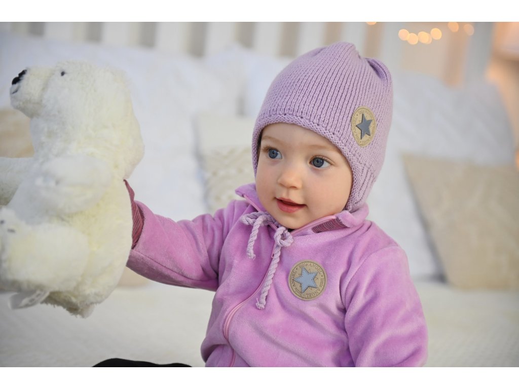 Little Angel Čepice pletená zavazovací LA Outlast ® - sv.fialová