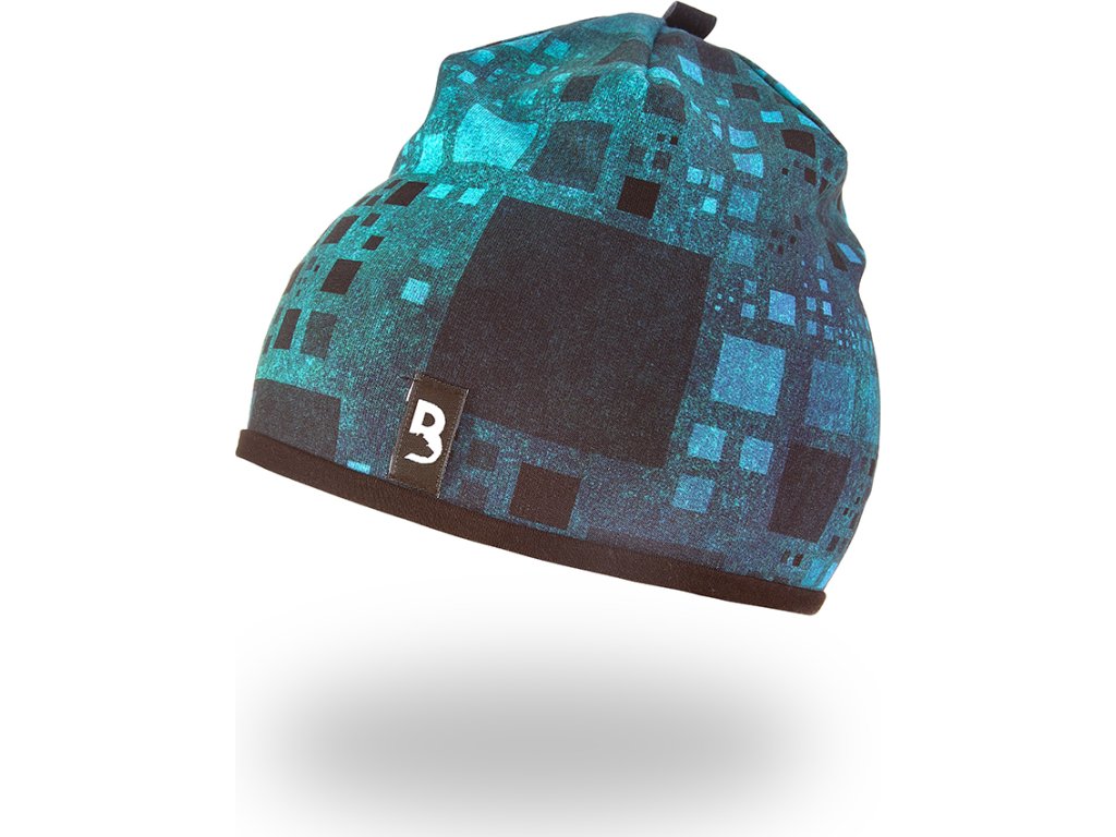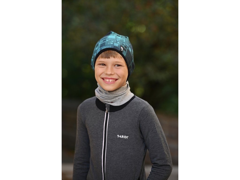 Little Angel Čepice podšitá Outlast® - černotyrkysové čtverce/černá