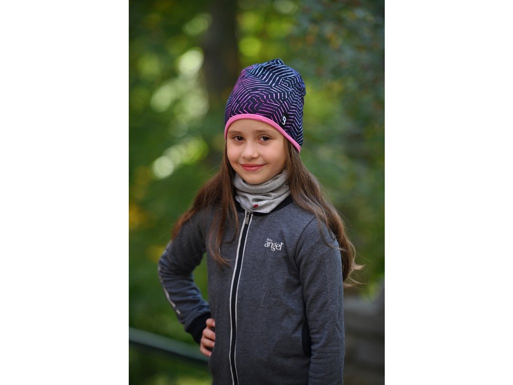 Little Angel Čepice podšitá Outlast® - fialovočerný vzor/tm.růžová