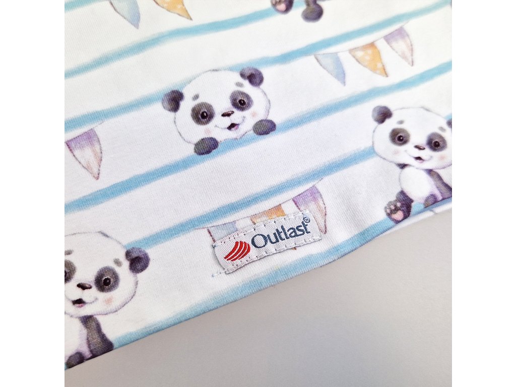 Little Angel Čepice podšitá zavazovací Outlast® - panda pruhy/sv.modrá