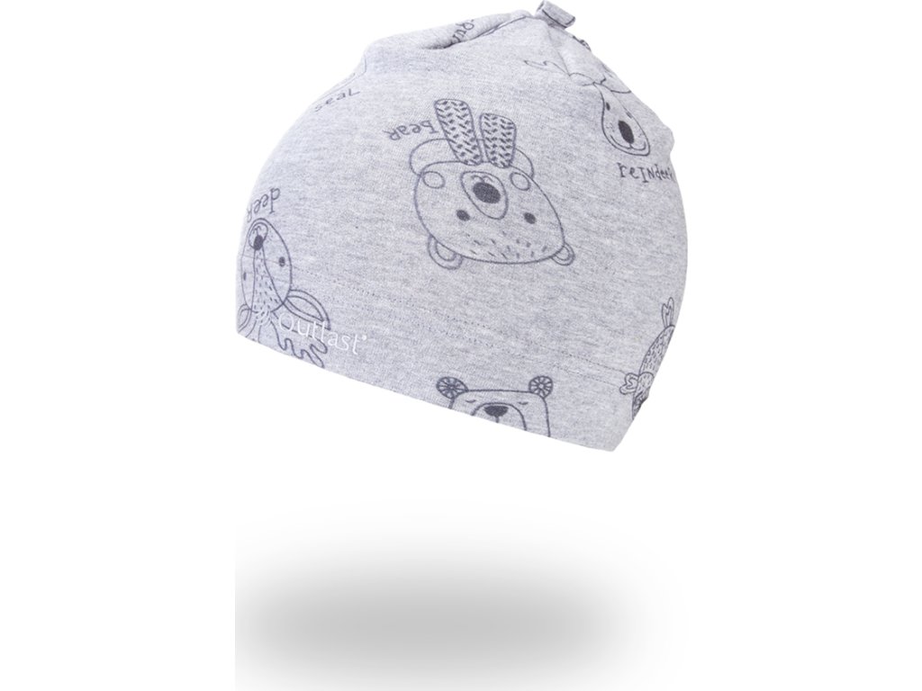 Little Angel Čepice smyk natahovací TISK Outlast ® - šedý melír zvířátka