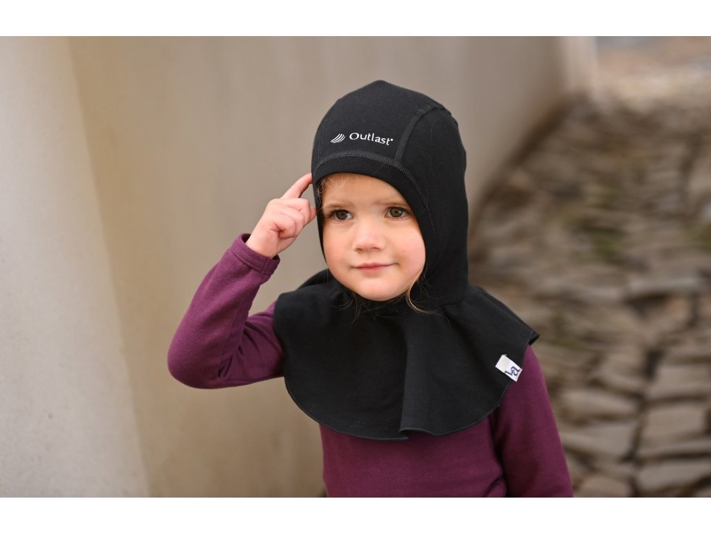 Elastická kukla skvěle ochrání hlavu, uši a krk před chladem či mrazem. Je skvělým pomocníkem, který nahradí čepici a šátek najednou. Kukla je ušita z jemného bavlněného úpletu s přidaným termoregulačním materiálem Outlast®. Jemný lem kolem obličeje zaručí komfort a ochranu před profouknutím. Při výrobě této kukly byl použitý termoregulační materiál Outlast® ve smykové variantě, která má z rubu smyčky a z líce je hladká. Smykový Outlast® je vhodný do chladnějšího počasí, takže kuklu skvěle využijete na podzimní, zimní a jarní měsíce. Materiál Outlast® umí pracovat s tělesným teplem a reguluje pocit teplotní pohody během nošení. Přebytečné teplo odvádí a uchovává, a v případě ochlazení jej opět použije a zahřeje. Dítě se tak v kukle nezpotí ani neprochladne. Kukla má ploché švy a je opatřena reflexním logem pro lepší viditelnost potmě nebo v přítmí. Kukla s materiálem Outlast® je perfektním doplňkem do chladných měsíců.