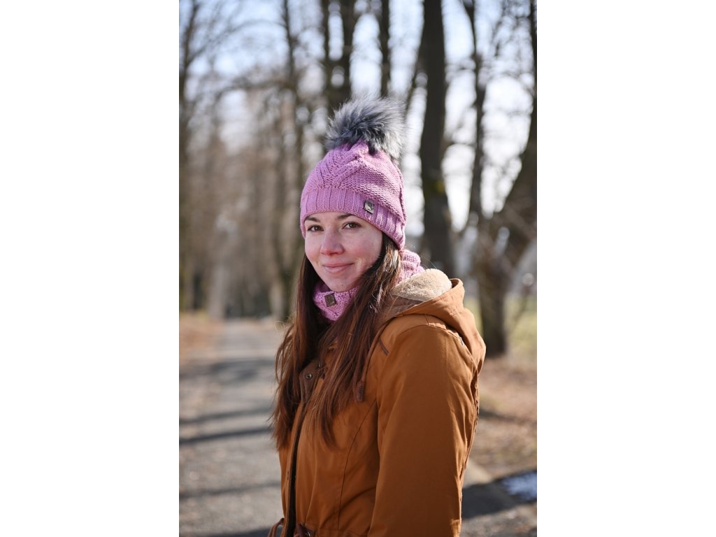 Little Angel set pletená čepice s BAMBULÍ a nákrčník Outlast ® - levandulová