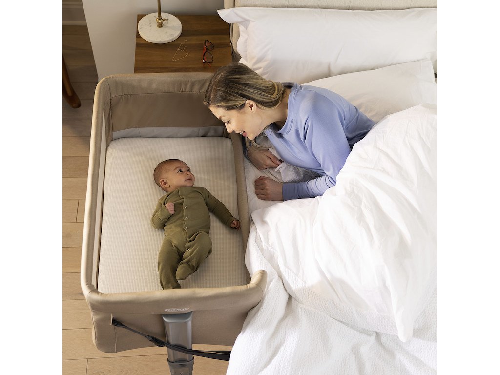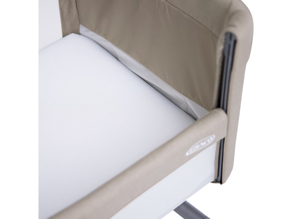 Americká globální značka Graco působí na trhu již více než 60 let. Za tuto dobu se stala jednou z nejznámějších značek dětského zboží na světě. Jedná se o nejprodávanější značku dětských výrobků v USA i celosvětově. Jejím cílem je zajistit kvalitní, bezpečné a promyšlené výrobky za dostupné ceny. Klade důraz na jednoduchou obsluhu a tím i usnadnění každodenního života rodičů a dětí. postýlka Sweet2Sleep™ Vše máte přímo na dosah s postýlkou Sweet2Sleep™. Tato postýlka je nabitá všemi funkcemi, které potřebujete, abyste měli miminko přímo u sebe a zároveň vám pomůže zachovat si svůj vlastní prostor na spaní, který má během mateřství cenu zlata. Klidný spánek - Postýlku Sweet2Sleep™ upevníte vedle své postele a neztratíte tak své lůžko, ani blízkost k vašemu dítěti. Usnadníte si noční krmení i uspávání a zároveň si dopřejete maximum možného spánku. Opona dolů - Boční panel snadno stáhnete směrem dolů, nebo nahoru jednou rukou. Tím si usnadníte přístup k miminku, nebo mu naopak vymezíte jeho vlastní prostor dle aktuální potřeby, a to na rozdíl od běžných postýlek téměř neslyšně. klíčové vlastnosti: •úžasná postýlka připojitelná k vaší posteli, která vám zachová váš vlastní prostor pro spánek a zároveň zachová blízký kontakt s vaším dítětem •snadno ovladatelný stahovací bok umožní snadný přístup k vašemu dítěti, kdykoliv to bude potřeba •možnost krmit i spát v těsné blízkosti dítěte, aniž by spalo s vámi v posteli •dítě si zvyká na svou vlastní postýlku bez toho, aby ztratilo kontakt s rodiči •velmi široké možnosti nastavení do jedné z 11 výškových pozic •možnost nastavení 4 poloh sklonu postýlky •možnost nastavení každé strany postýlky do jiné výšky slouží jako pomoc při potížích s refluxem (hlavička je výše než zbytek těla) •komplexně polstrovaná s kvalitní matrací •snadné sestavení •pasuje k drtivé většině postelí a pohovek •popruhy pro upevnění k posteli jsou součástí balení •zatahovací nohy pro umístění hned vedle postele i pokud má úložný prostor •4 kolečka potažená měkkým materiálem pro snadnou manévrovatelnost •možnost zabrzdění všech 4 kol •zaoblené hrany •polstrování všech stran pro maximální pohodlí a bezpečí dítěte •síťované boky a bočnice pro dobrou prodyšnost •lehký ale pevný hliníkový rám •součástí balení je taška na přenášení složené postýlky specifikace: •hmotnost: 8,6 kg •rozměry: 95 x 69 x 66-81 cm •využitelnost: od narození do 9 kg •video##https://youtu.be/OVe4iiLj66M#000005# informace pro spotřebitele •UPOZORNĚNÍ: Koš není vhodný pro děti, které mohou sedět nebo klečet nebo se vytáhnout nahoru. •UPOZORNĚNÍ: Výrobek se nesmí používat před čtením pokynů k použití. •informace o druzích postelí pro dospělé, ke kterým je přísuvná postýlka vhodná viz. manuál v příloze. •schváleno dle EN 16890:2017 + A1:2021 •dovozce: Babypoint s.r.o. Konětopy 62 262 31 Milín ČR