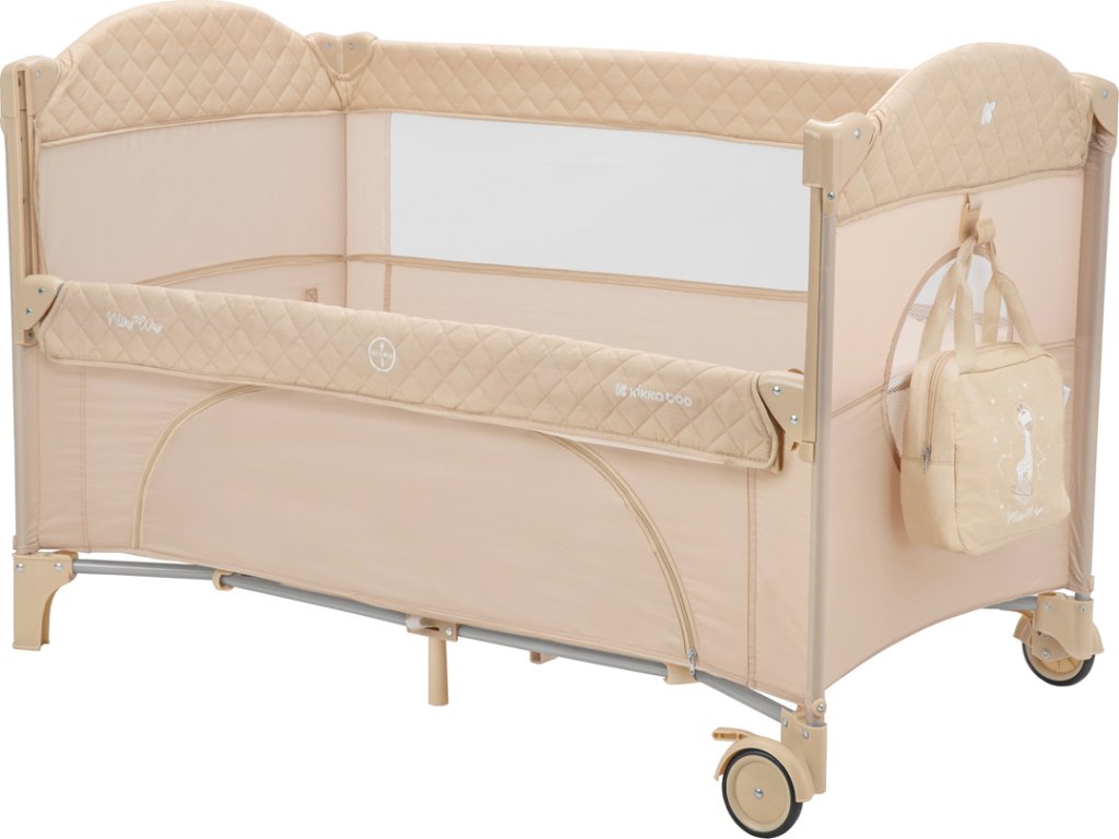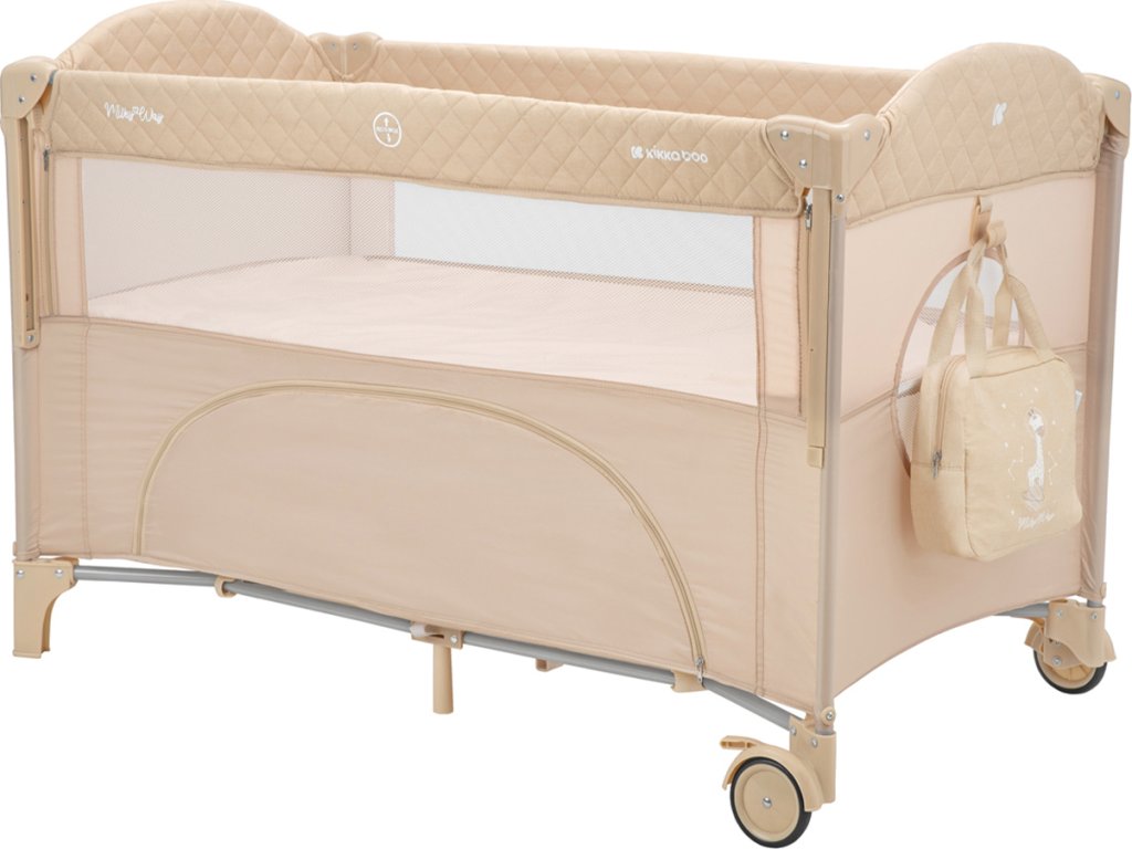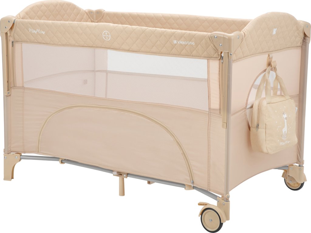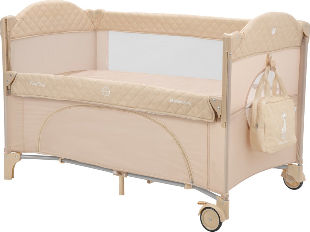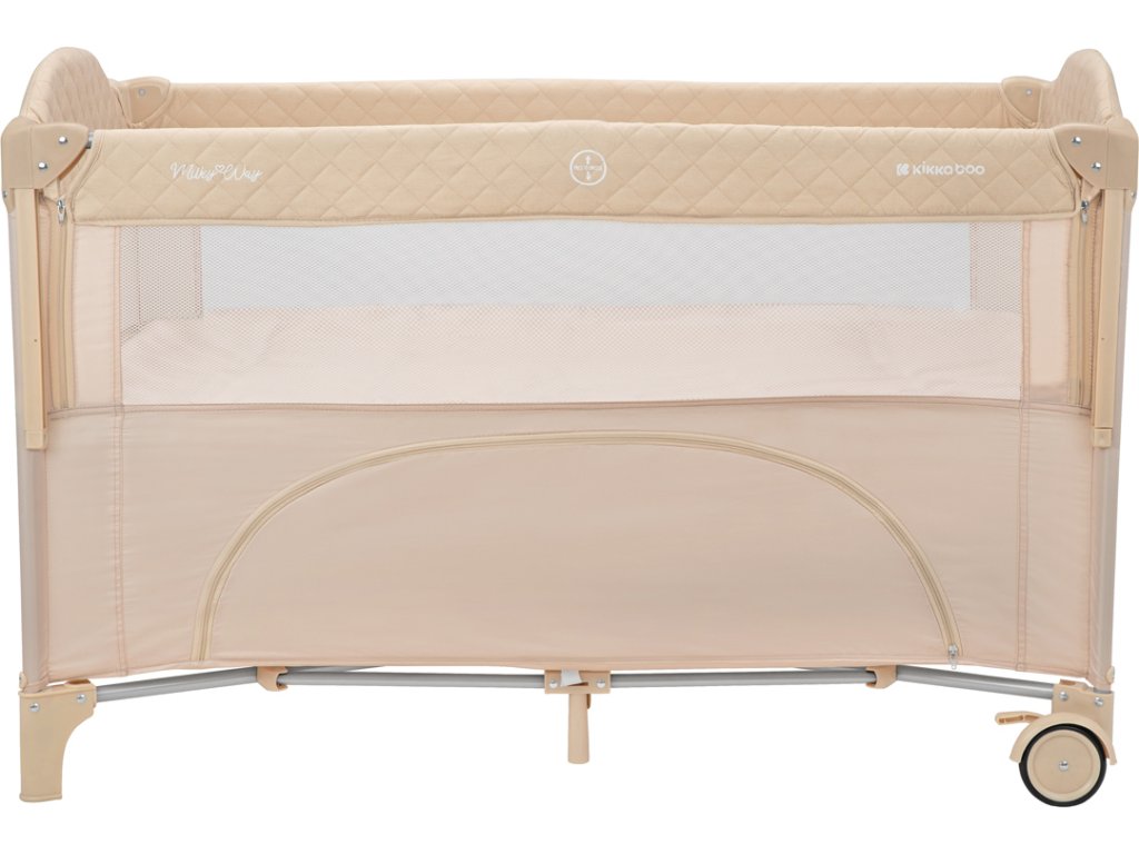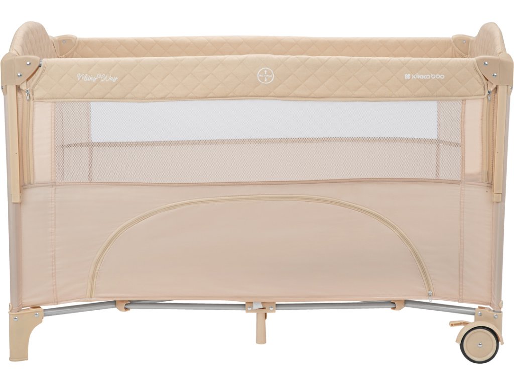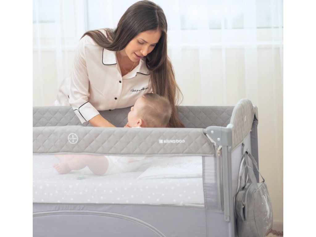 Cestovní postýlka KikkaBoo Milky Way nabízí dvě úrovně výšky uložení matrace dle věku dítěte a možnost stažení bočnice pro přistavení k posteli rodičů. Vysoko uložená matrace pro děti od narození do cca 6 měsíců usnadňuje rodičům přístup k miminku. Nízká poloha matrace je určena pro děti od 6 do 36 měsíců.
