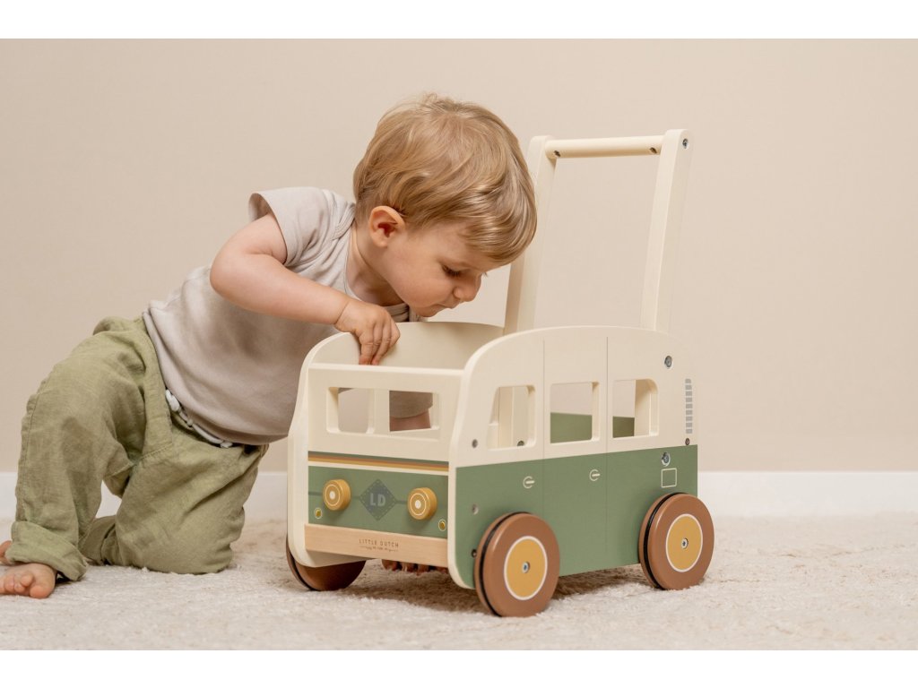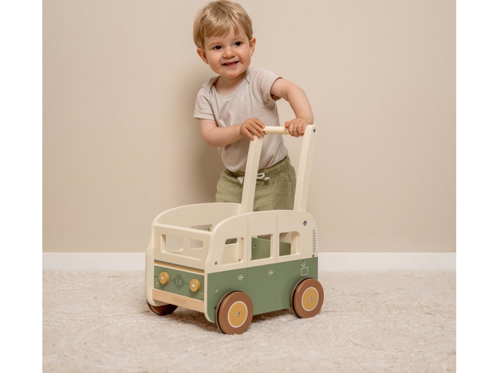 Chodítko se stabilní konstrukcí v podobě klasické dodávky je ideální pro trénování chůze dětí od 12 měsíců, které jsou téměř připraveny učinit první kroky. Užijte si společně radostné okamžiky, když vaše dítě poprvé přejde celou místnost. Díky svému provedení chodítko slouží i jako vozík, do kterého si dítě může naložit své oblíbené hračky.