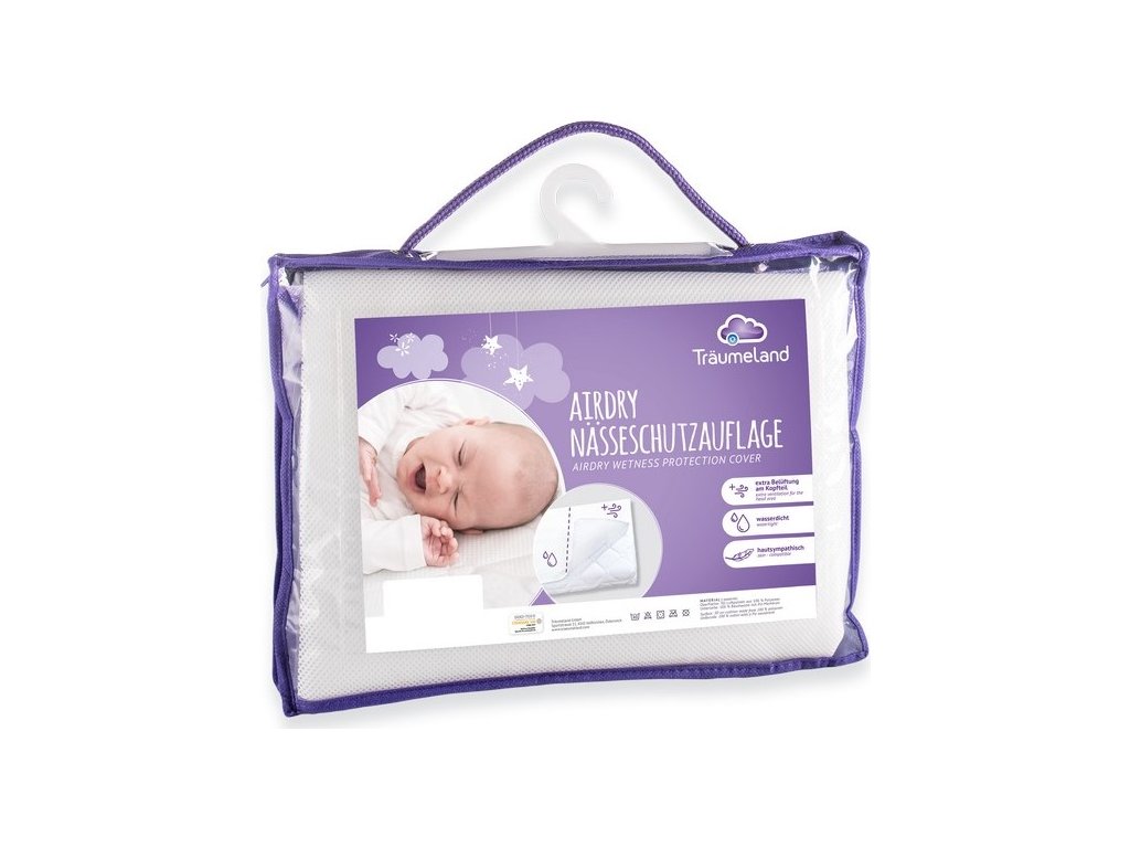 Nepropustná podložka nepropustná podložka s odvětrávanou oblastí hlavy a nohou 100% prodyšná v oblasti hlavy a chodidel ve střední části však nabízí 100% ochranu proti vlhkosti vduchový polštář ze 100% polyesteru (celoplošný) molton ze 100% bavlny s vnitřní polyuretanovou membránou (ve střední části) rozměr: 60 x 120 cm